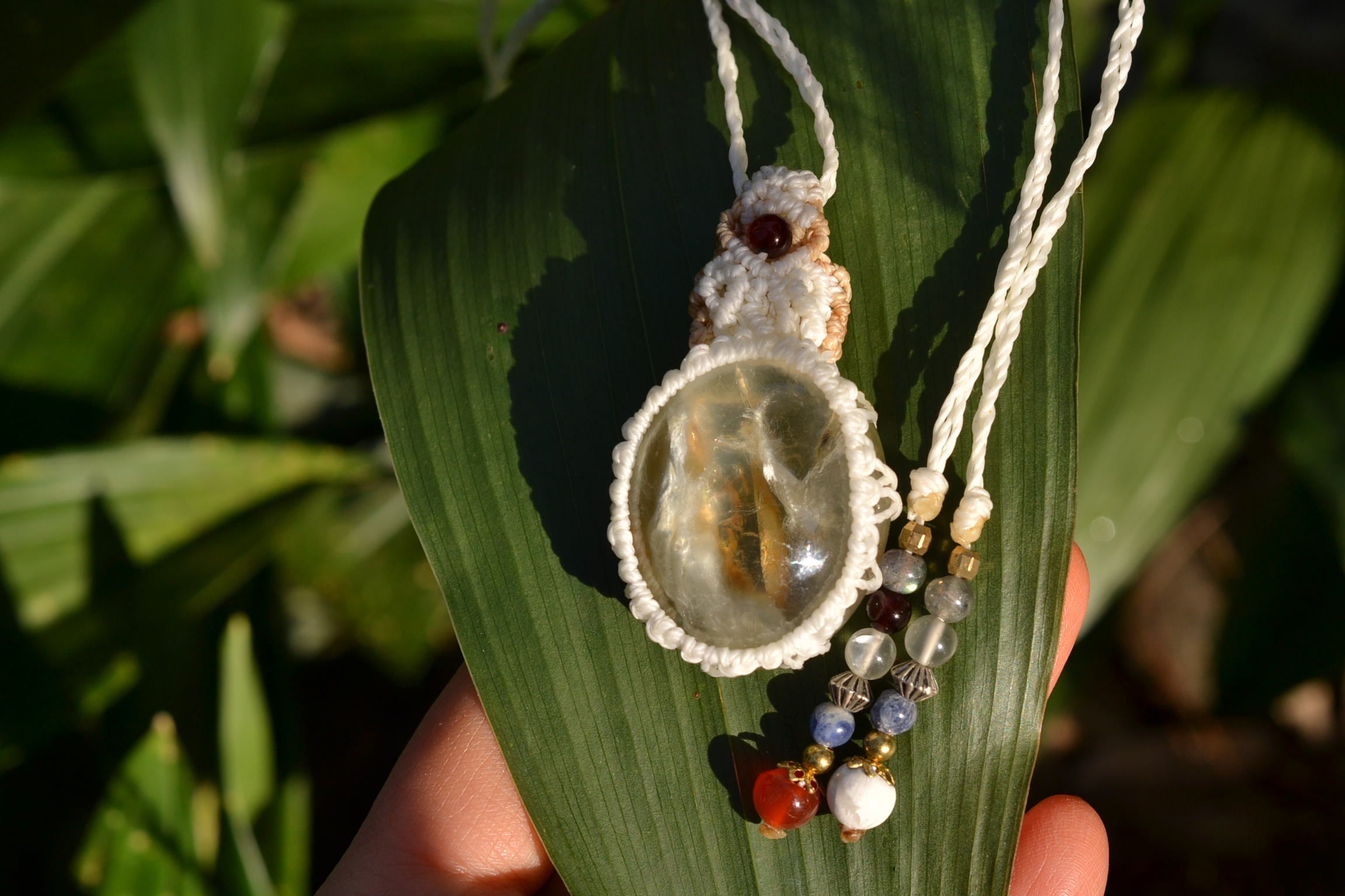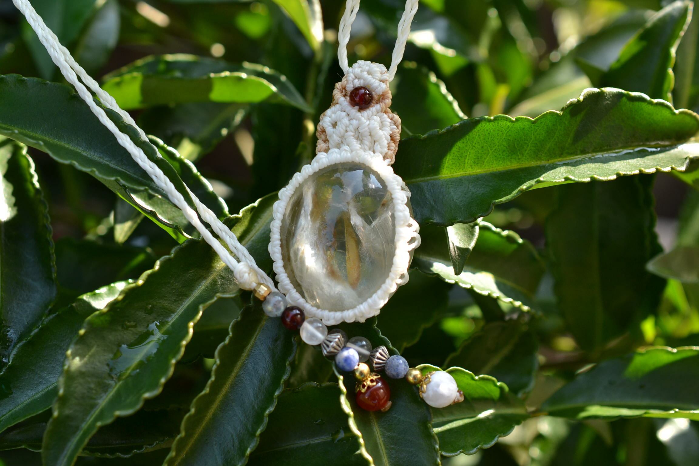 白夜模様★ガーデン水晶 マクラメペンダントgarm096