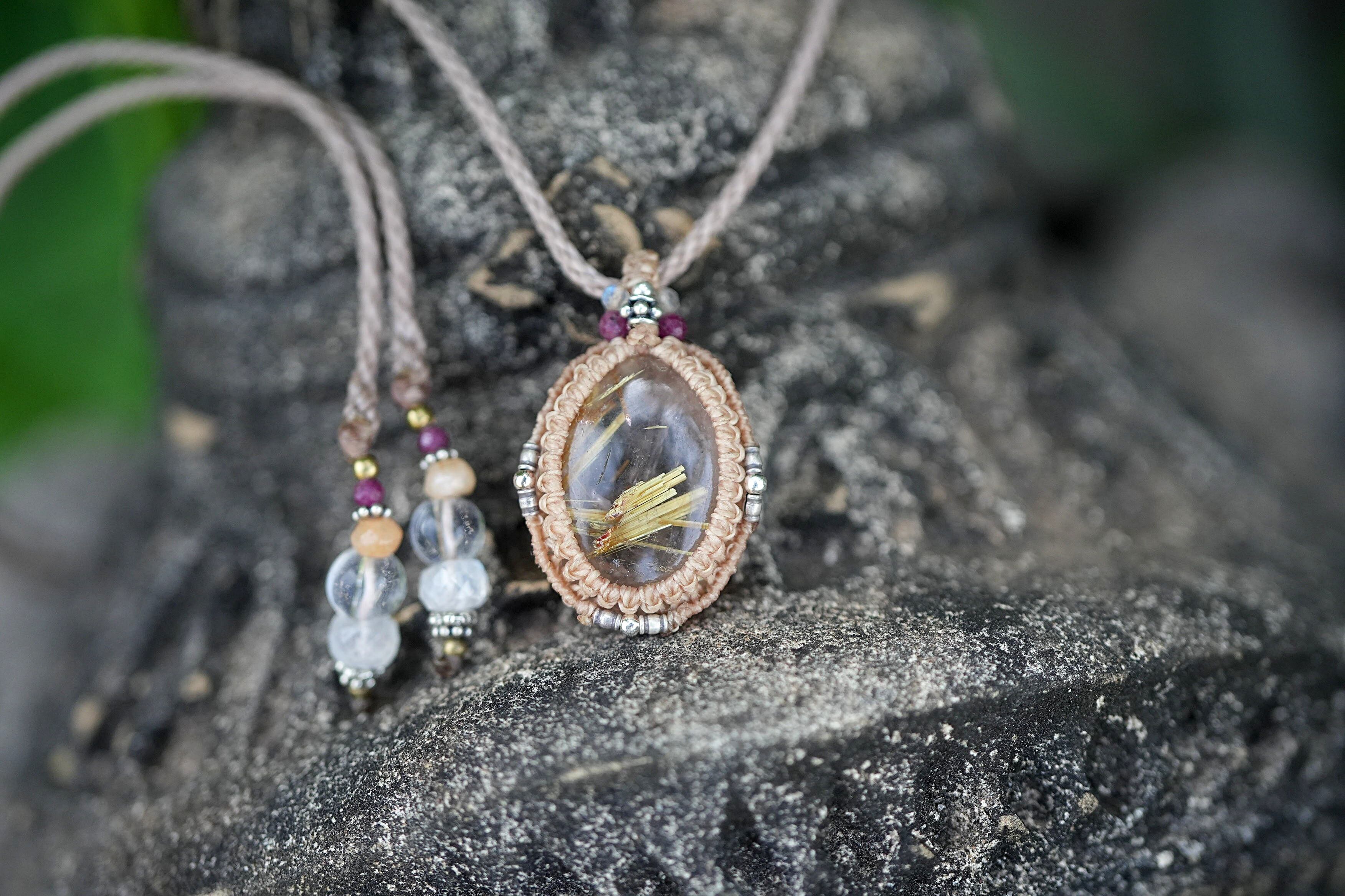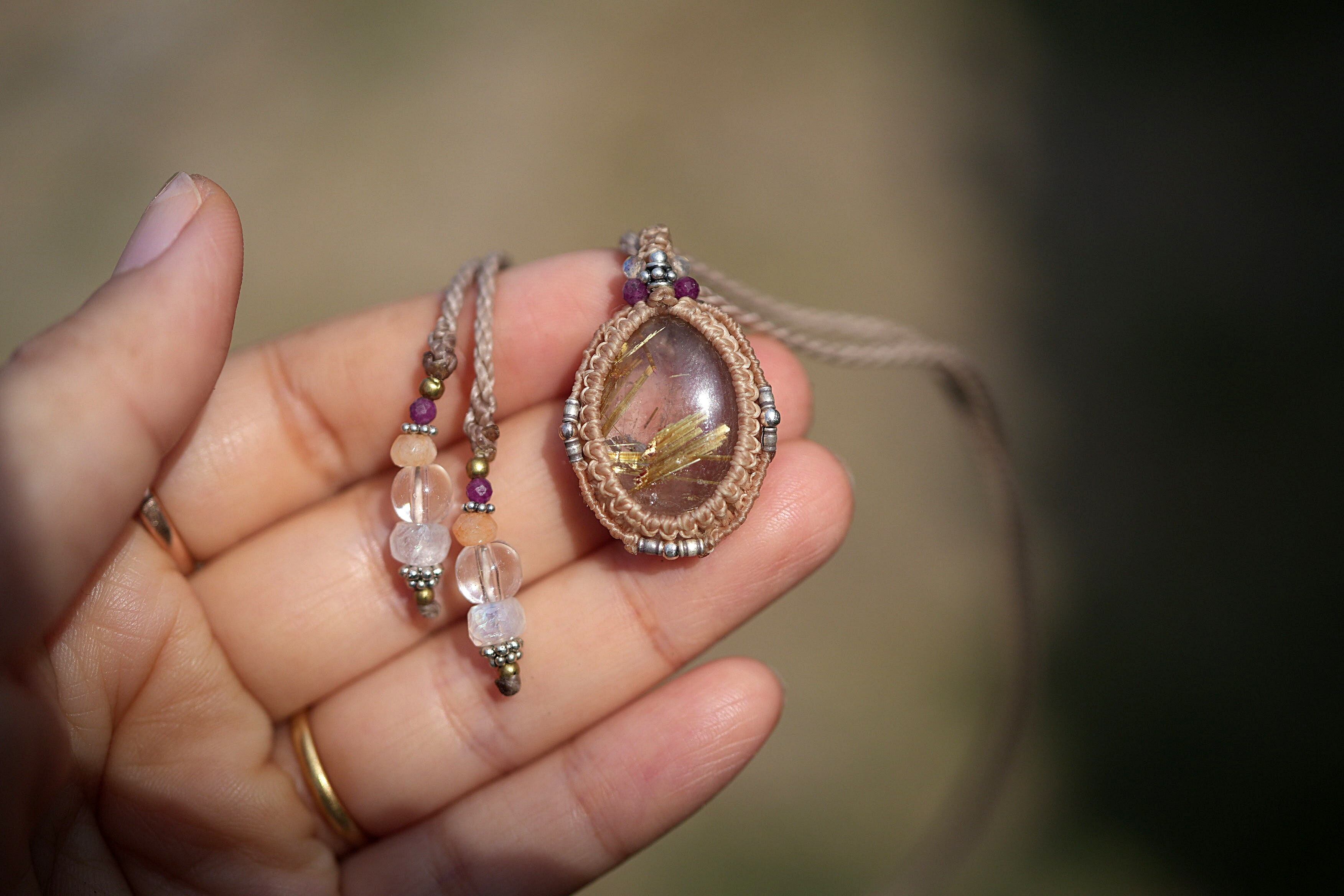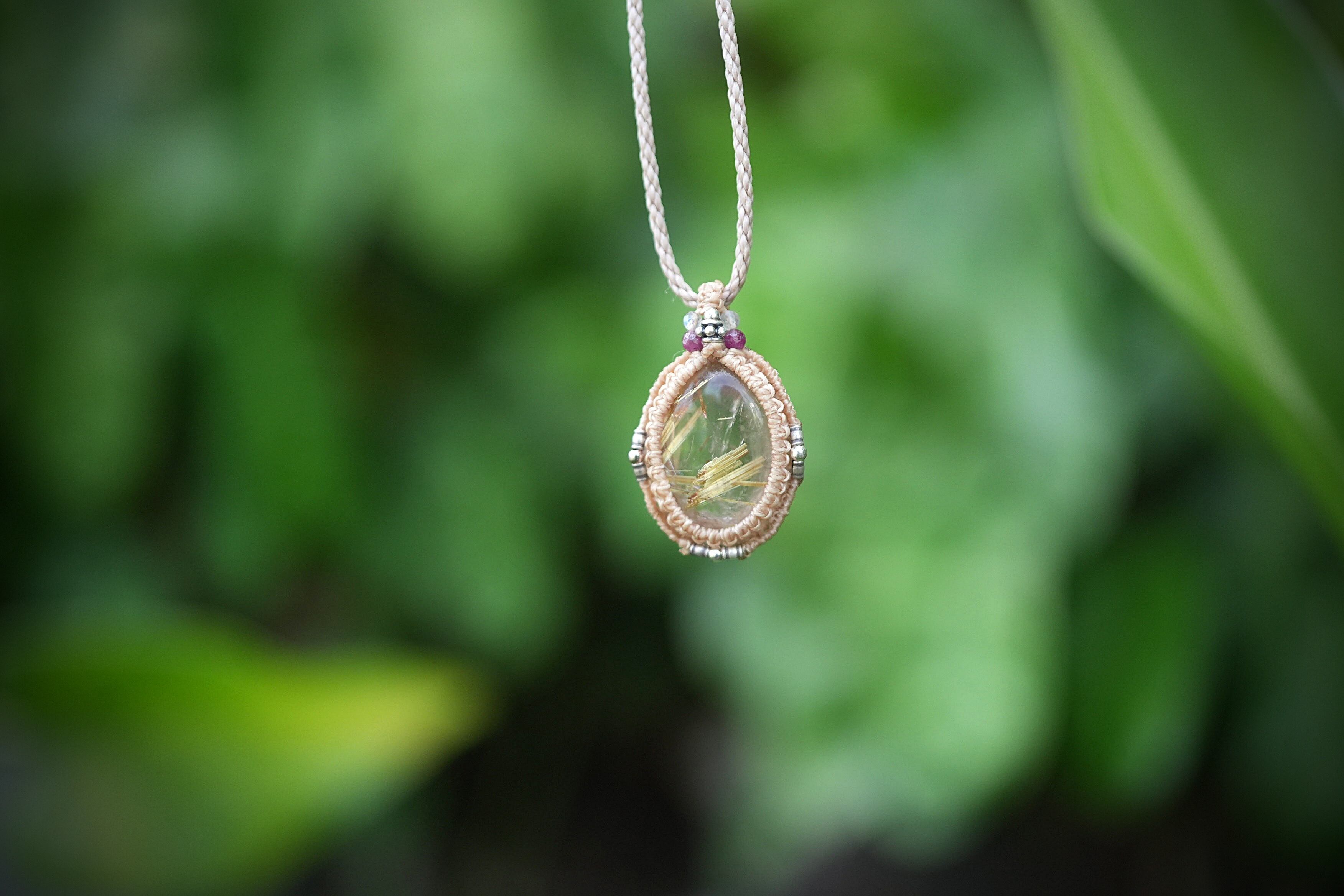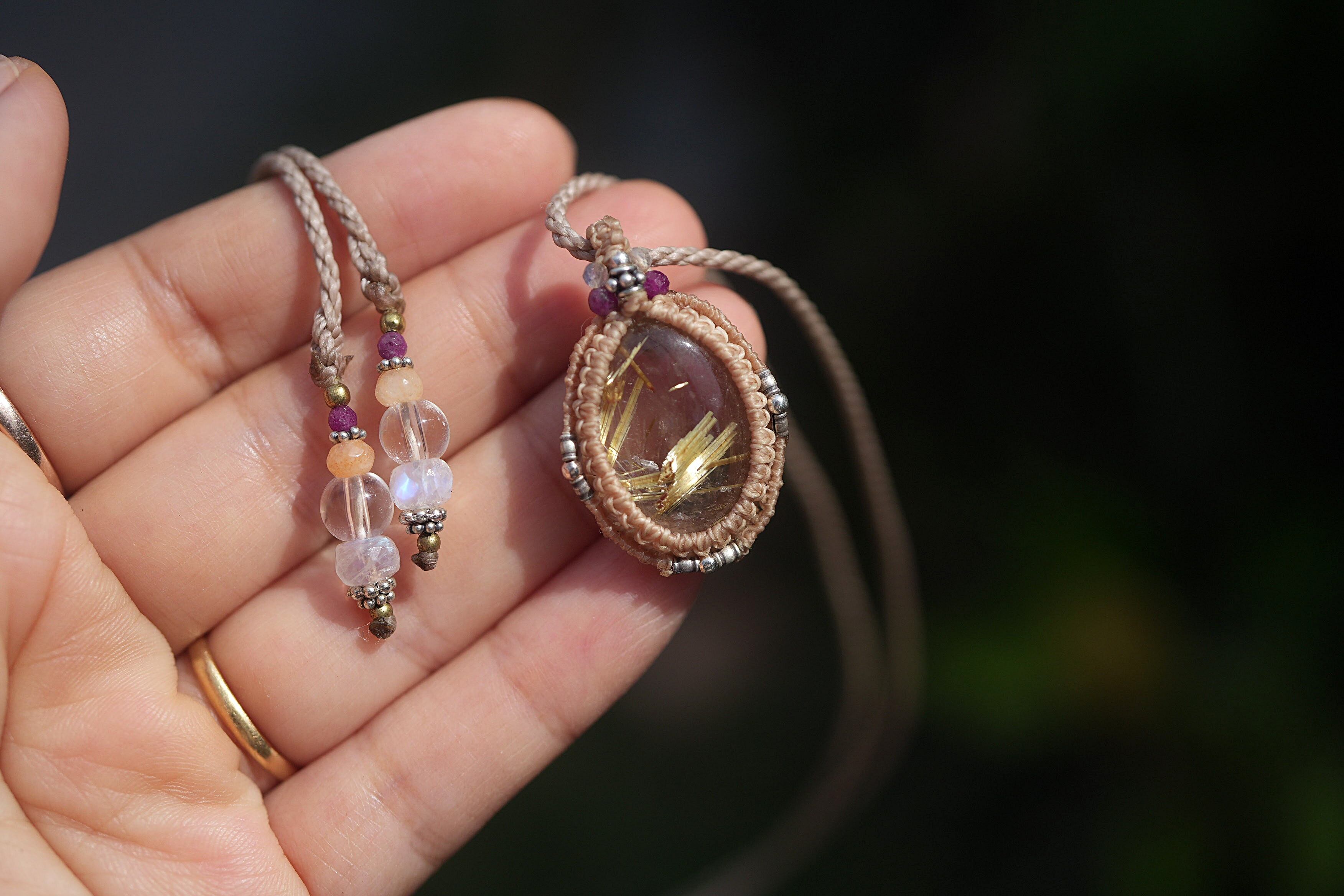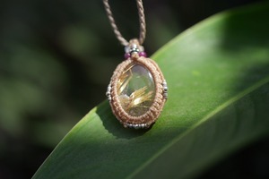 金の貼り紙★ゴールドルチルクォーツ マクラメネックレス1936