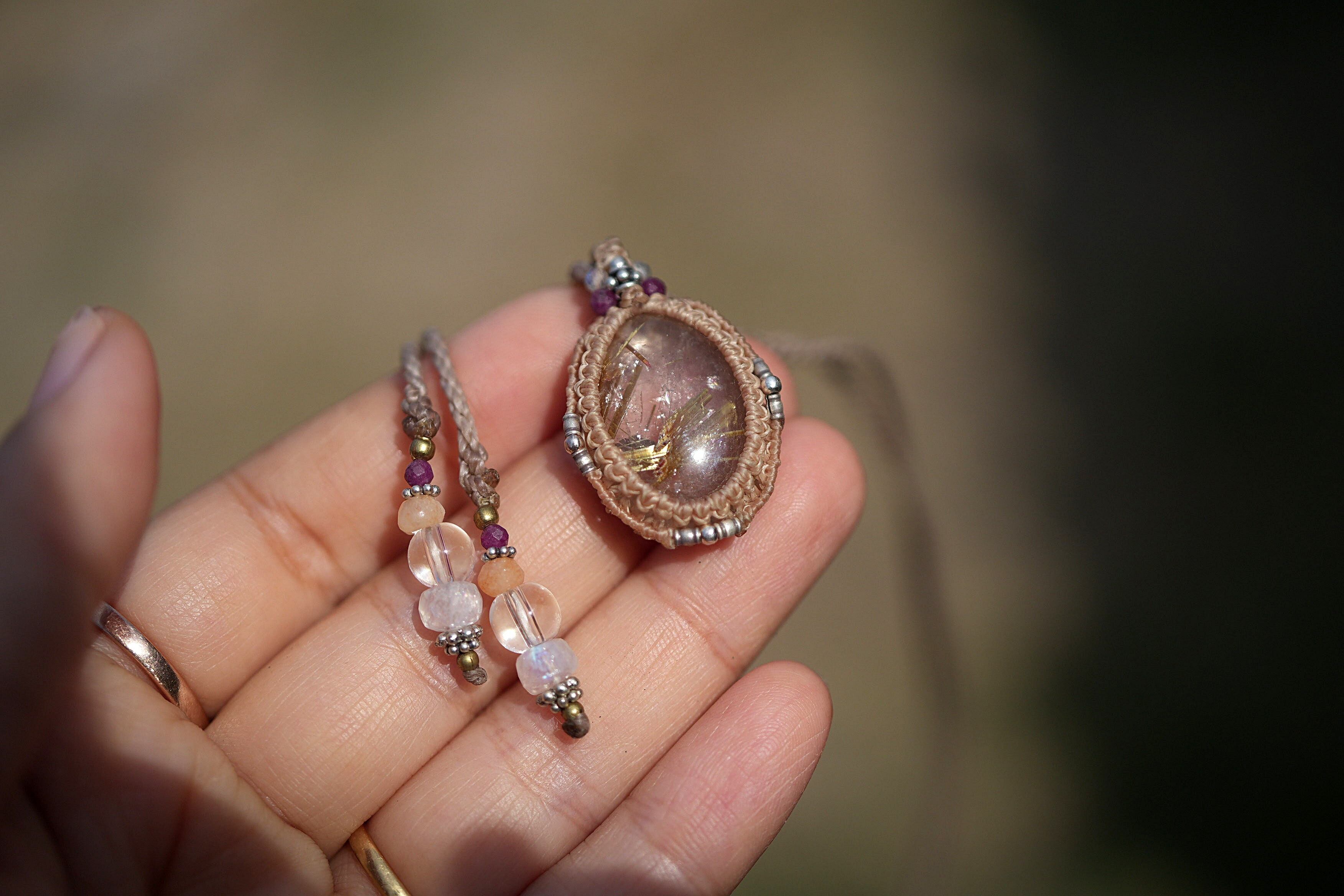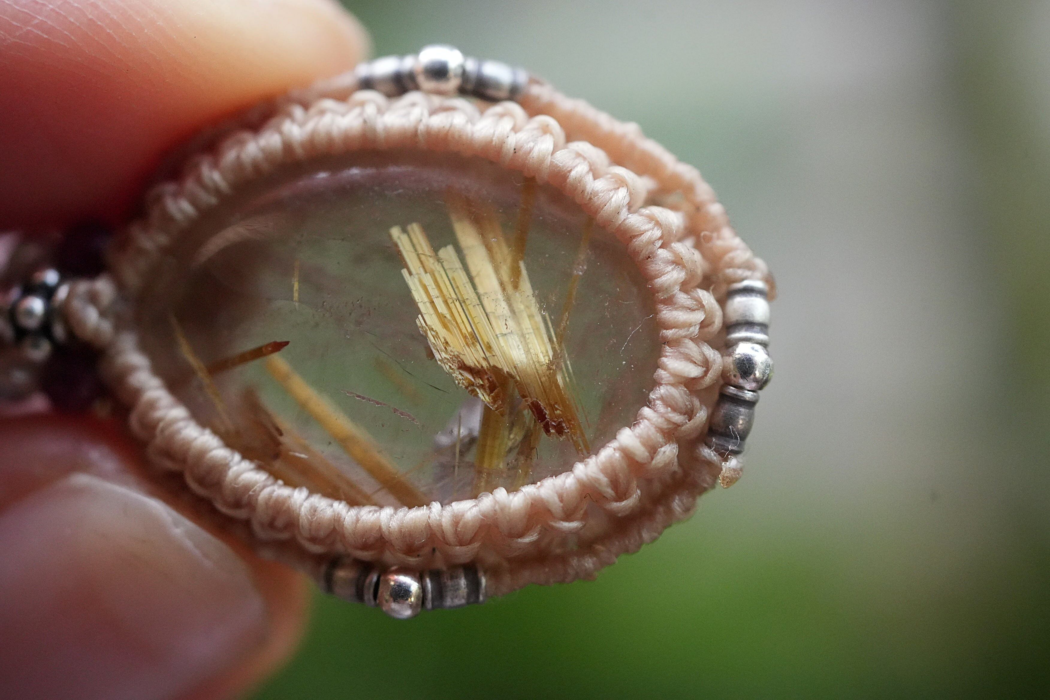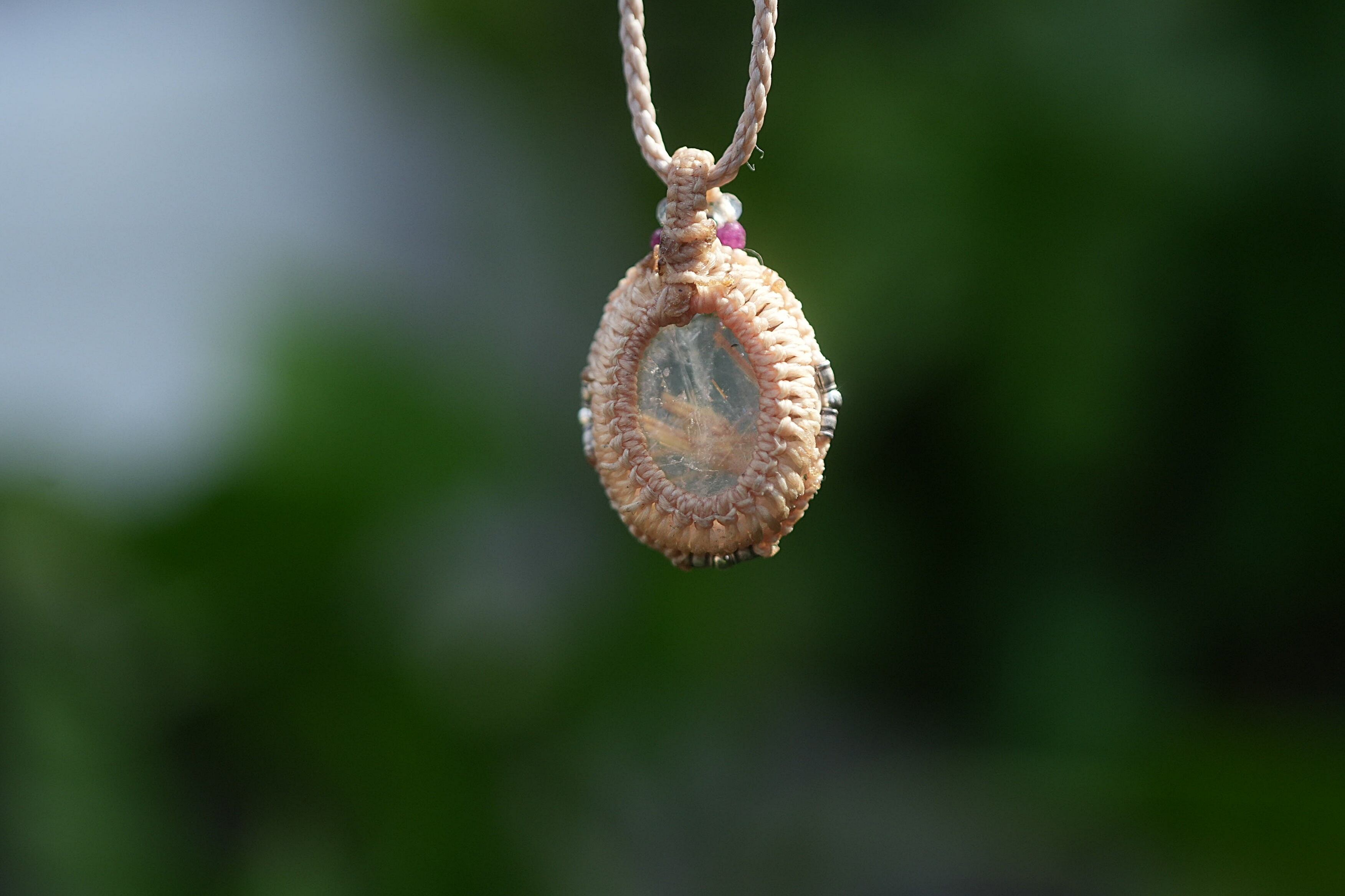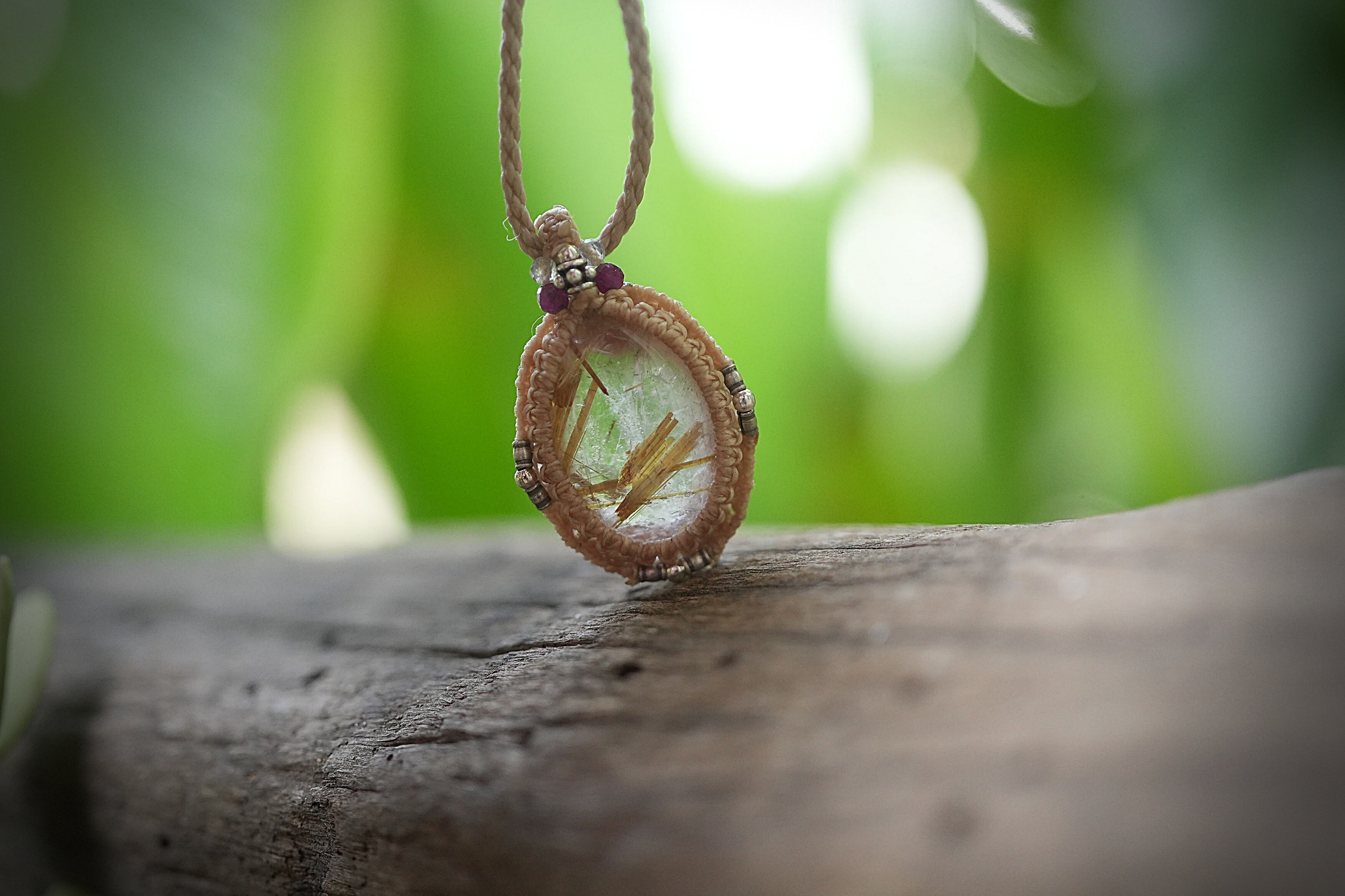 金の貼り紙★ゴールドルチルクォーツ マクラメネックレス1936
