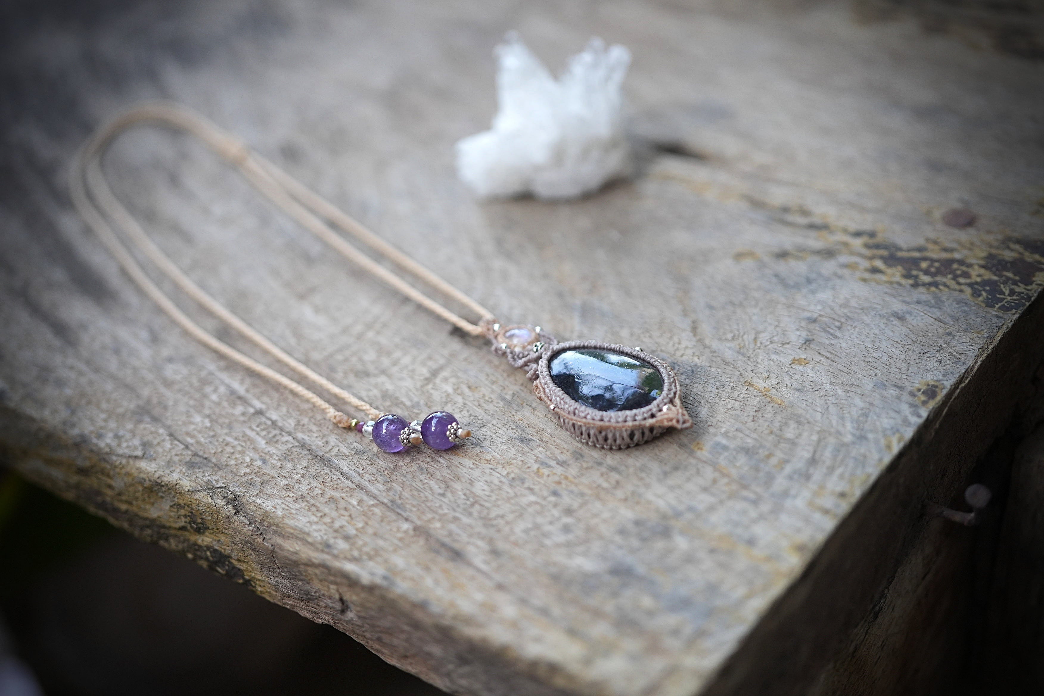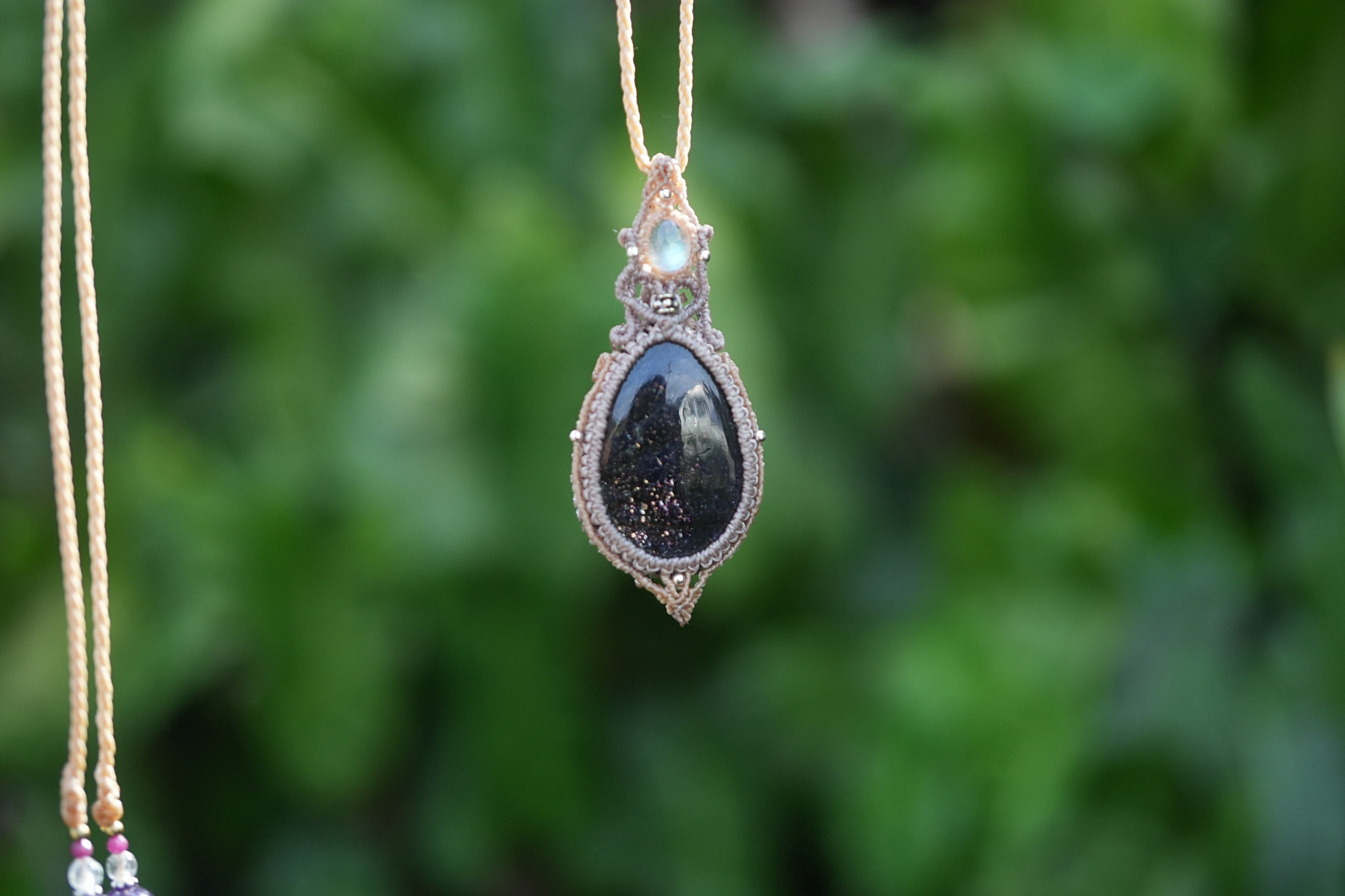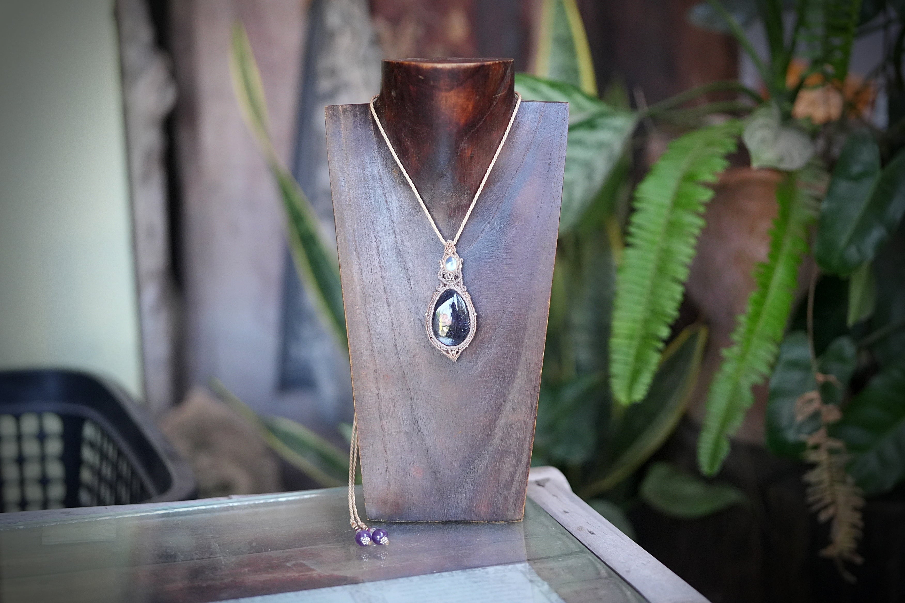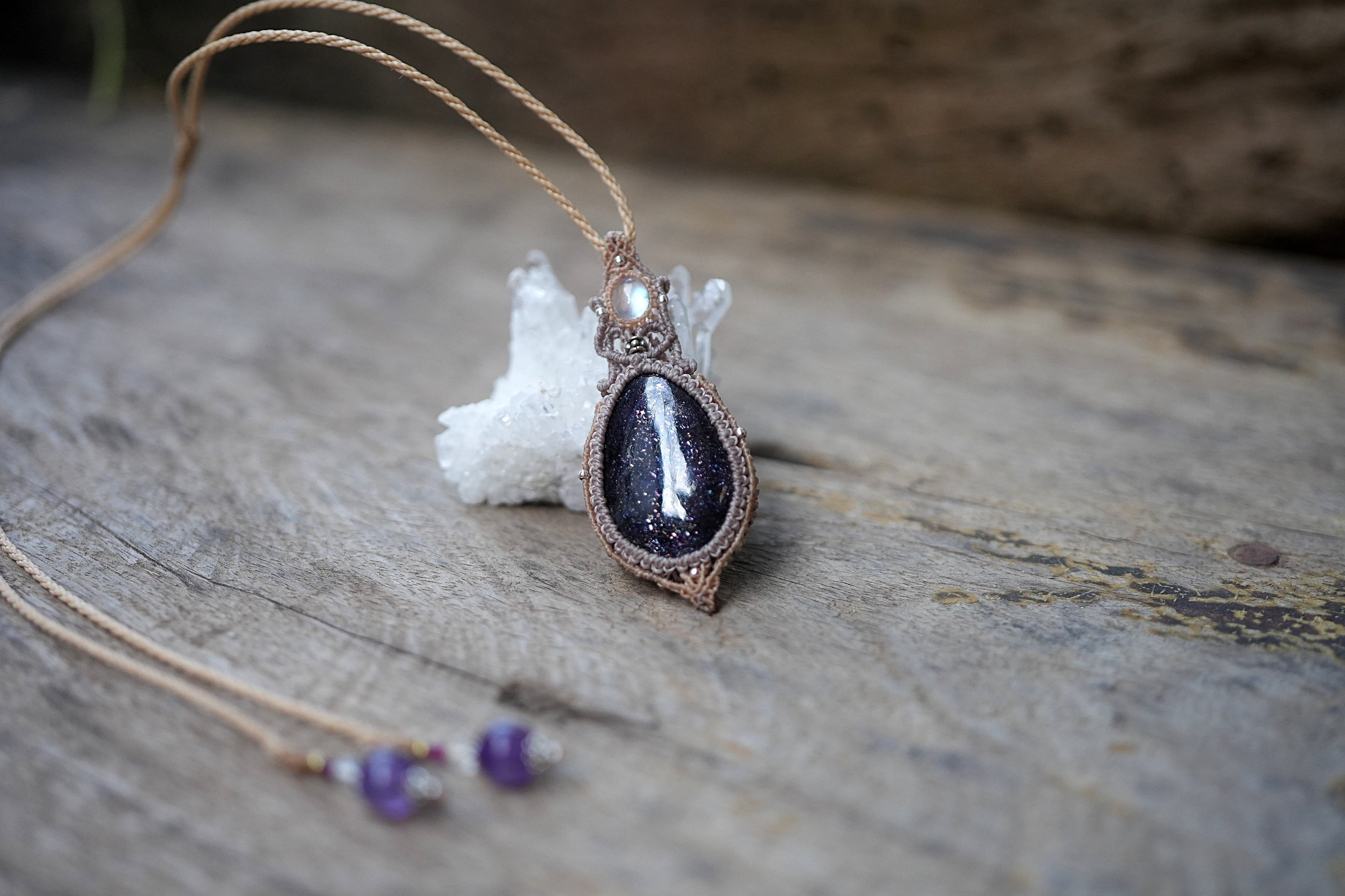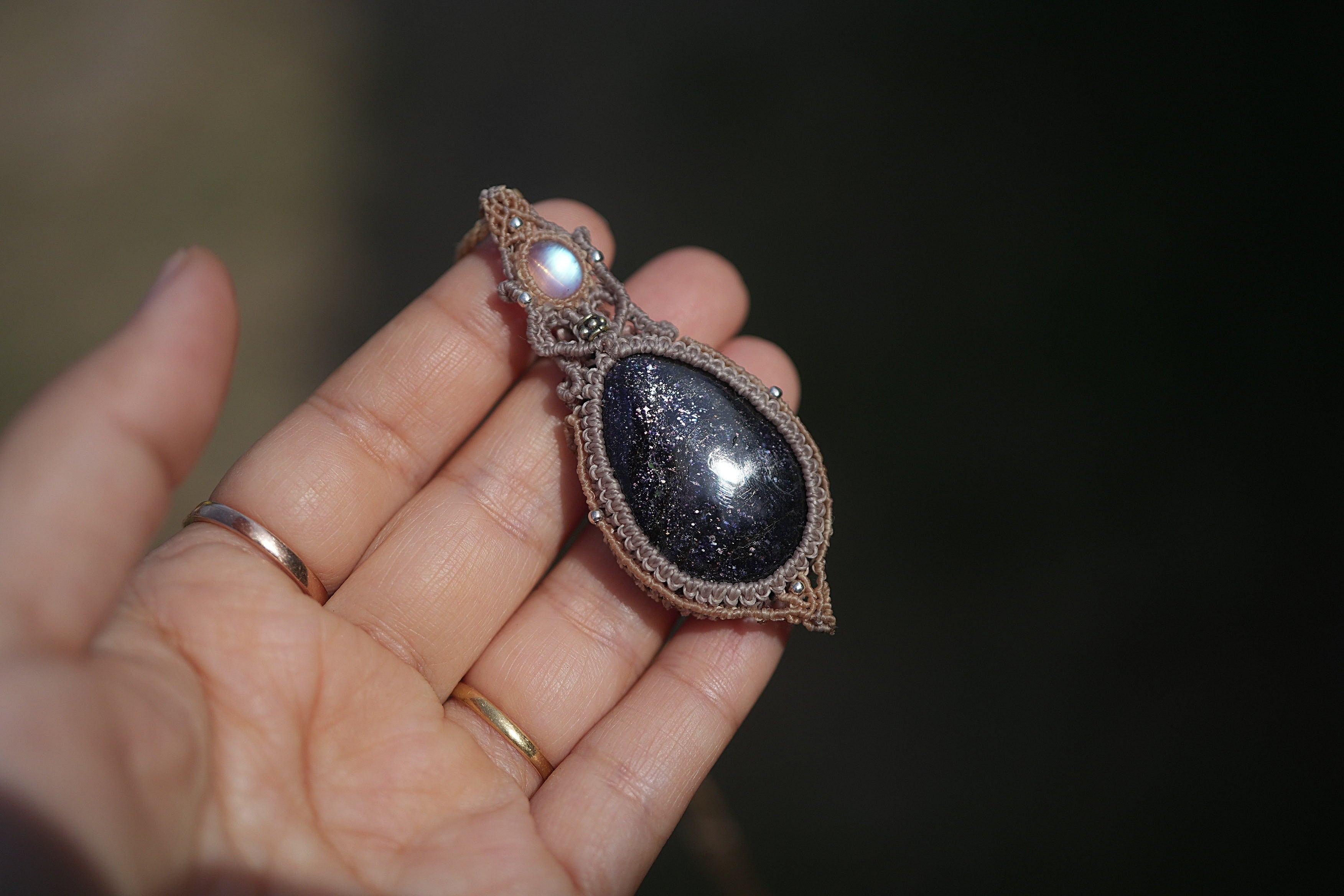 月と宇宙★moonstone iolite sunstone マクラメネックレス1939