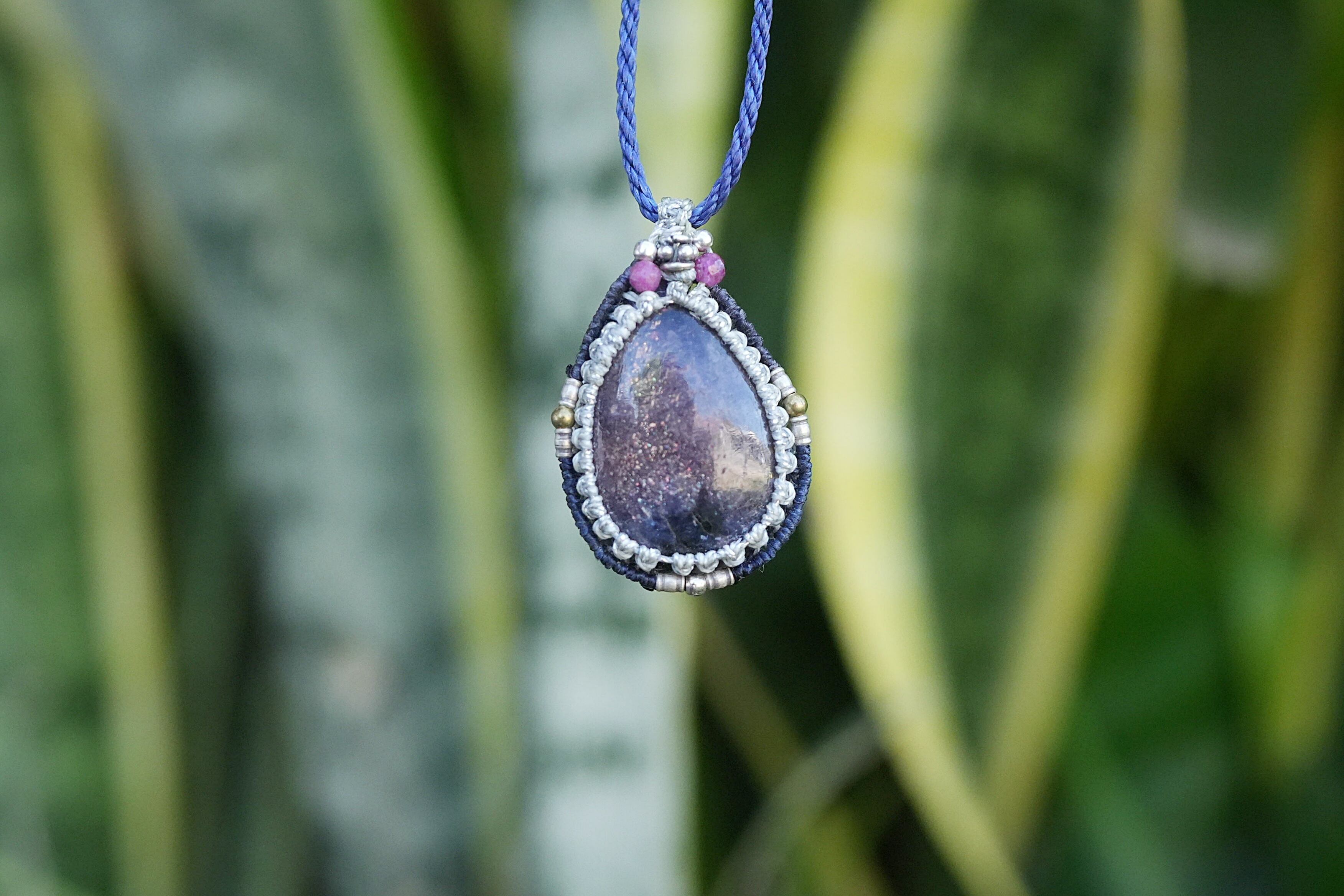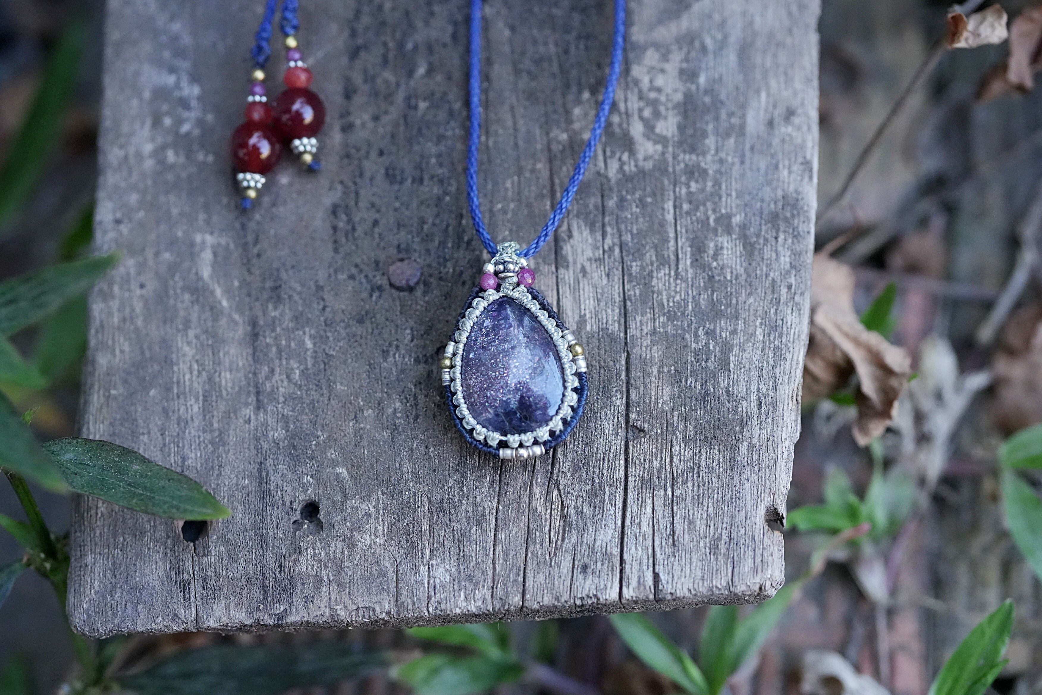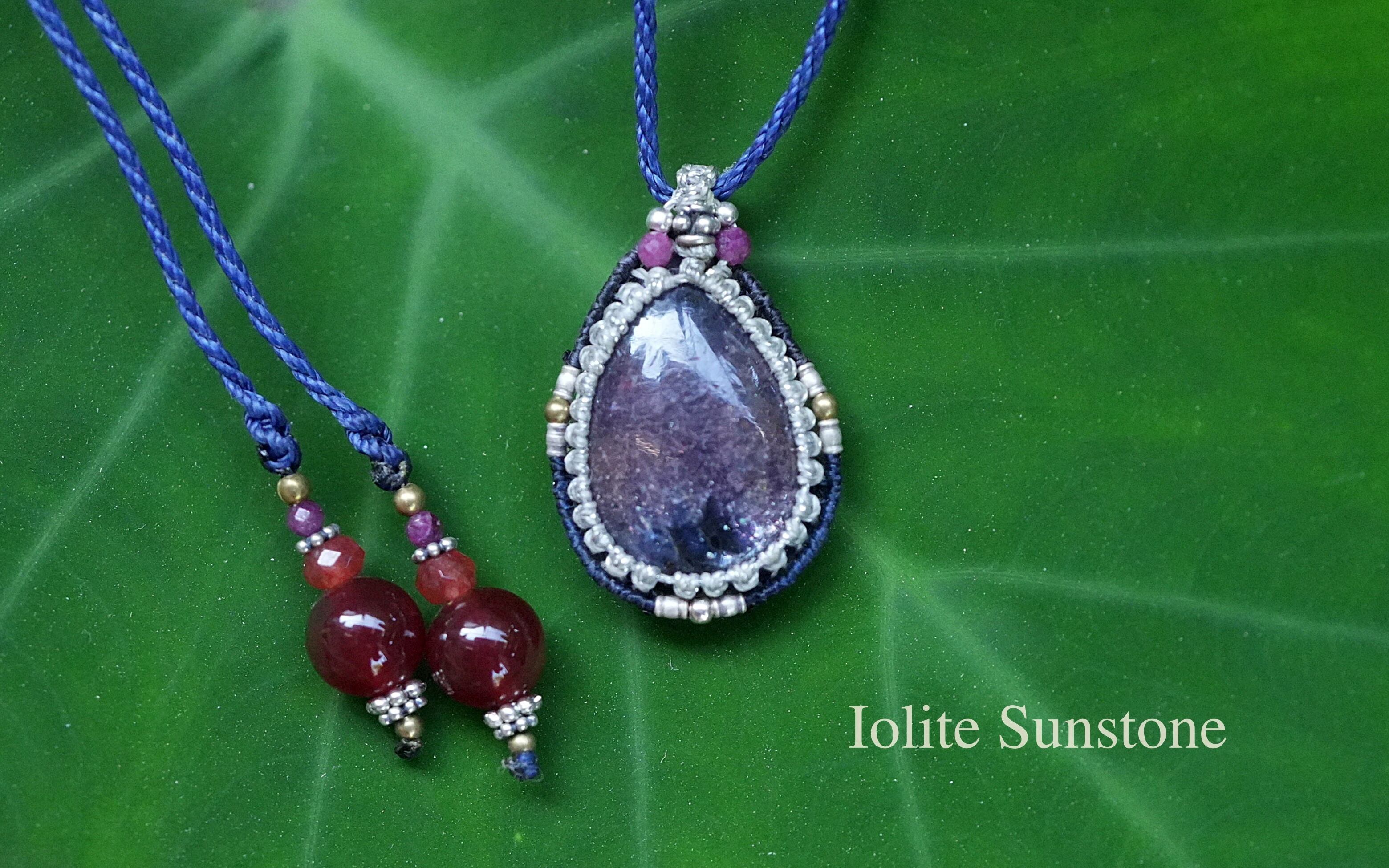 涙のアベンチュレッセンス★アイオライトサンストーン マクラメネックレス1944
