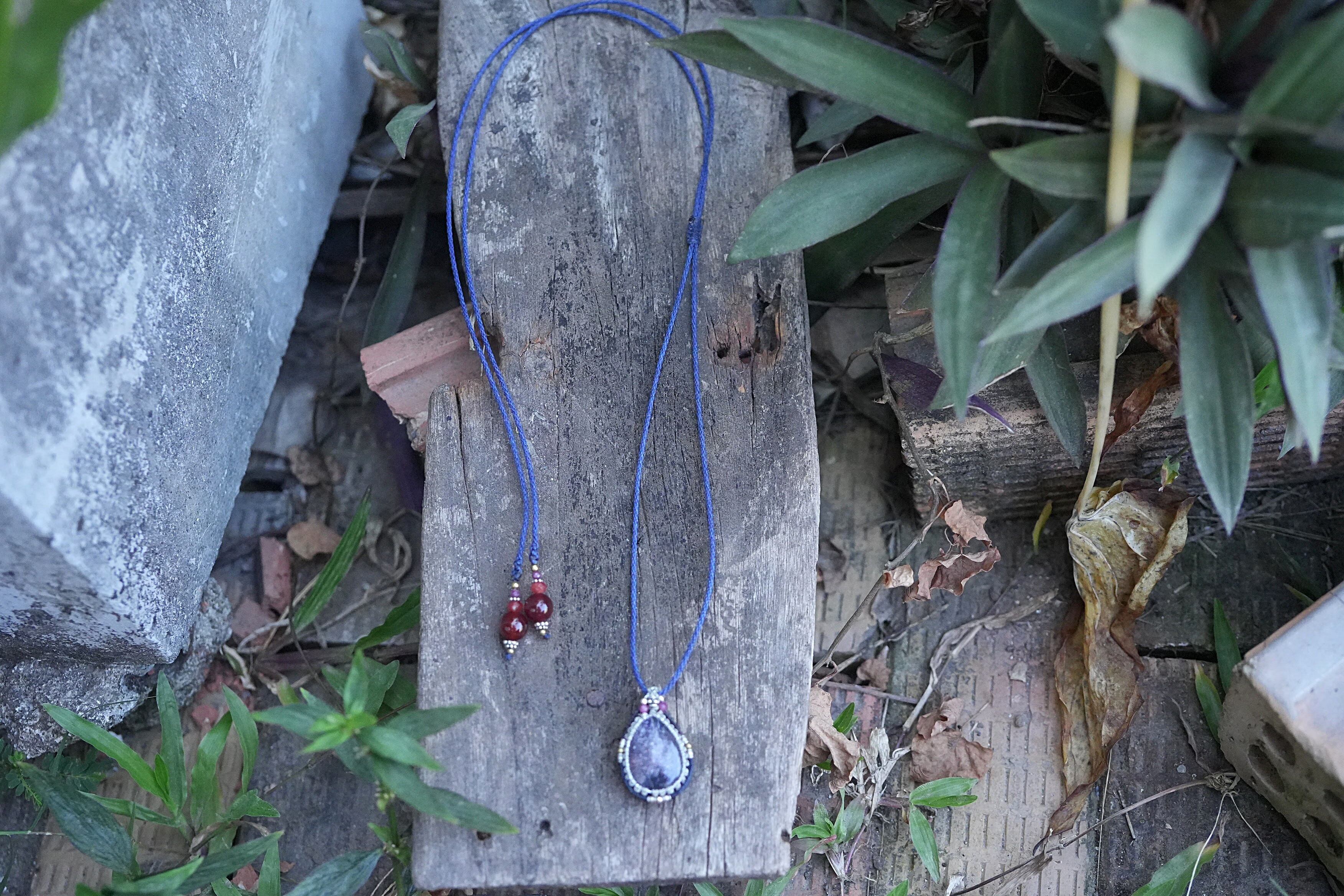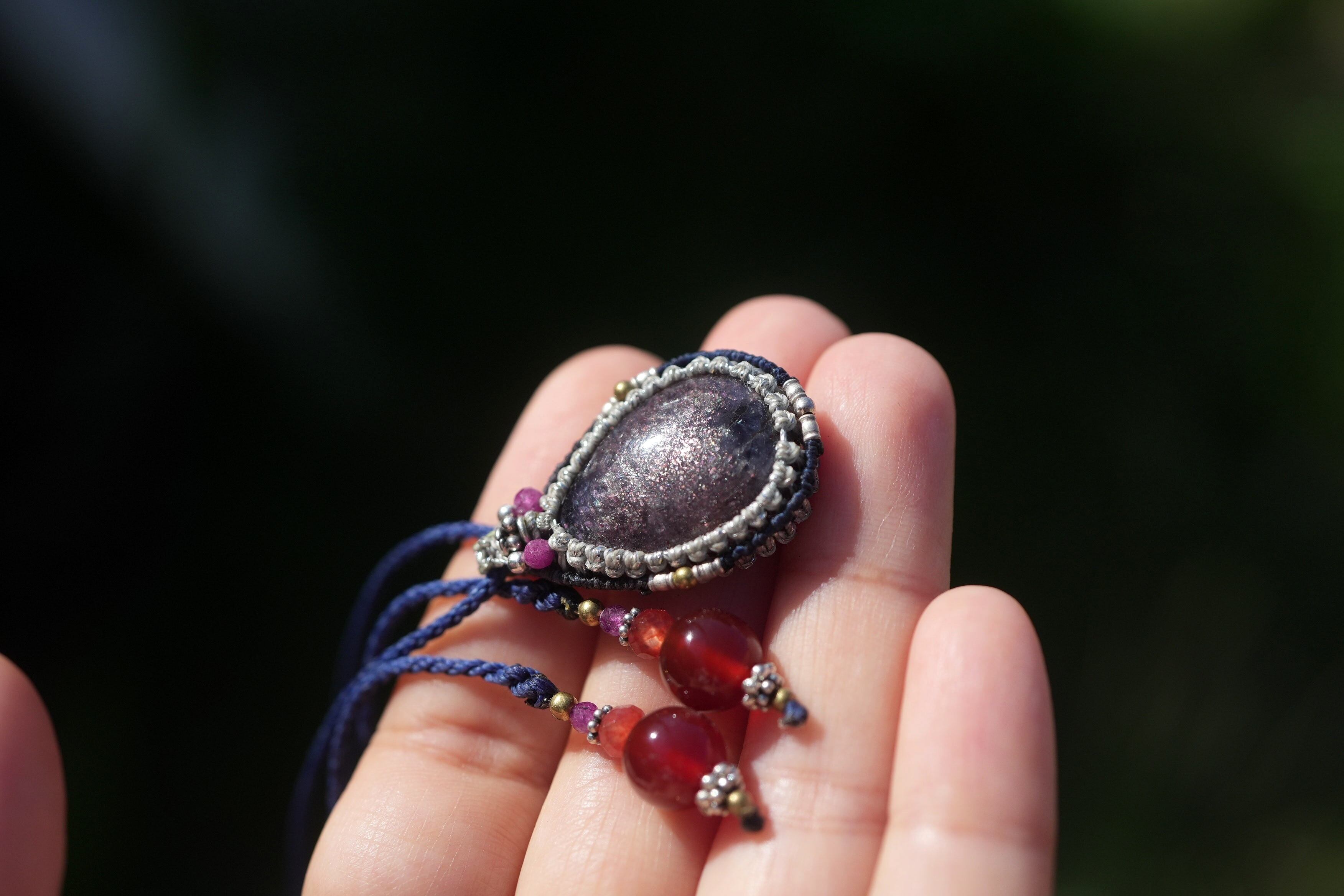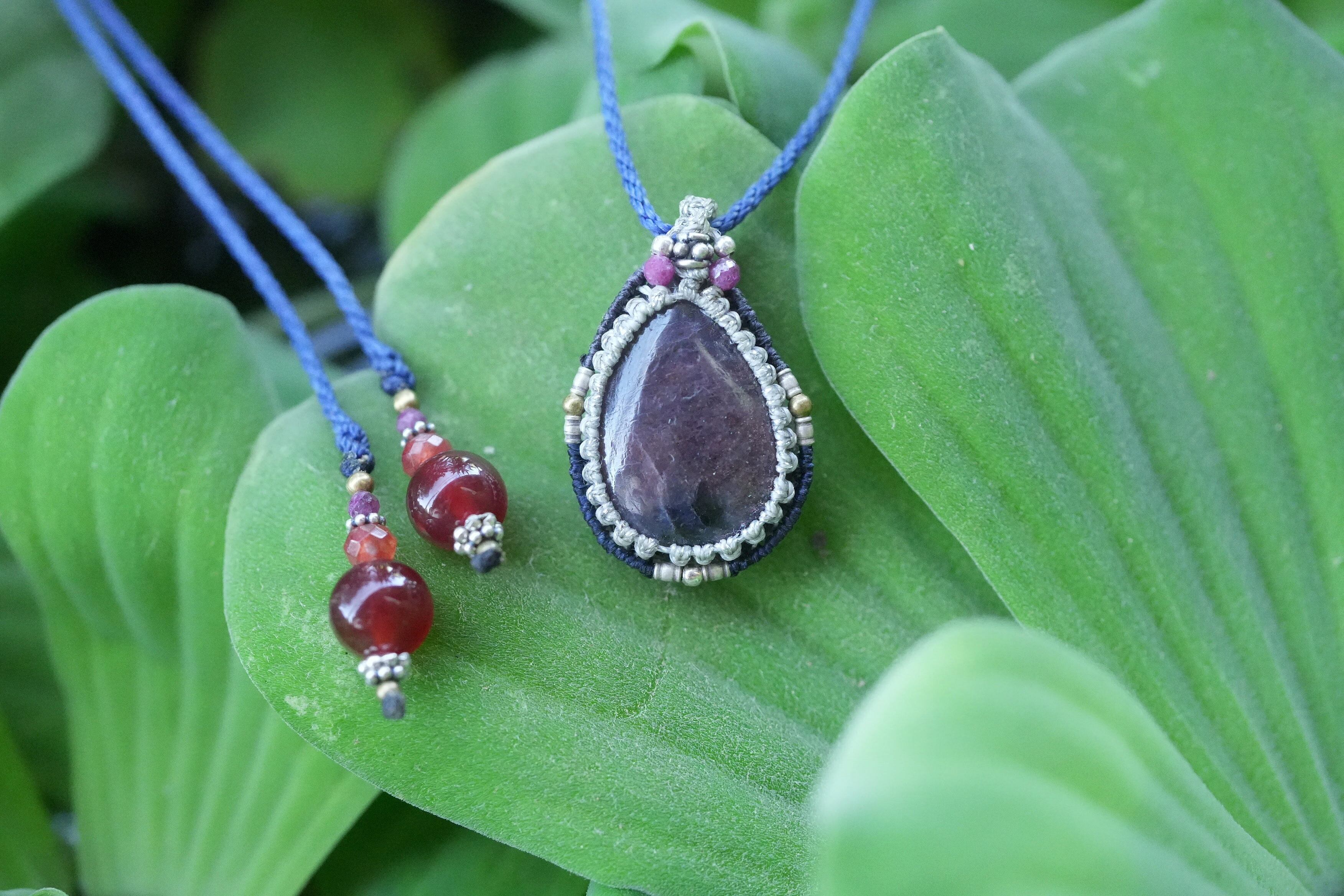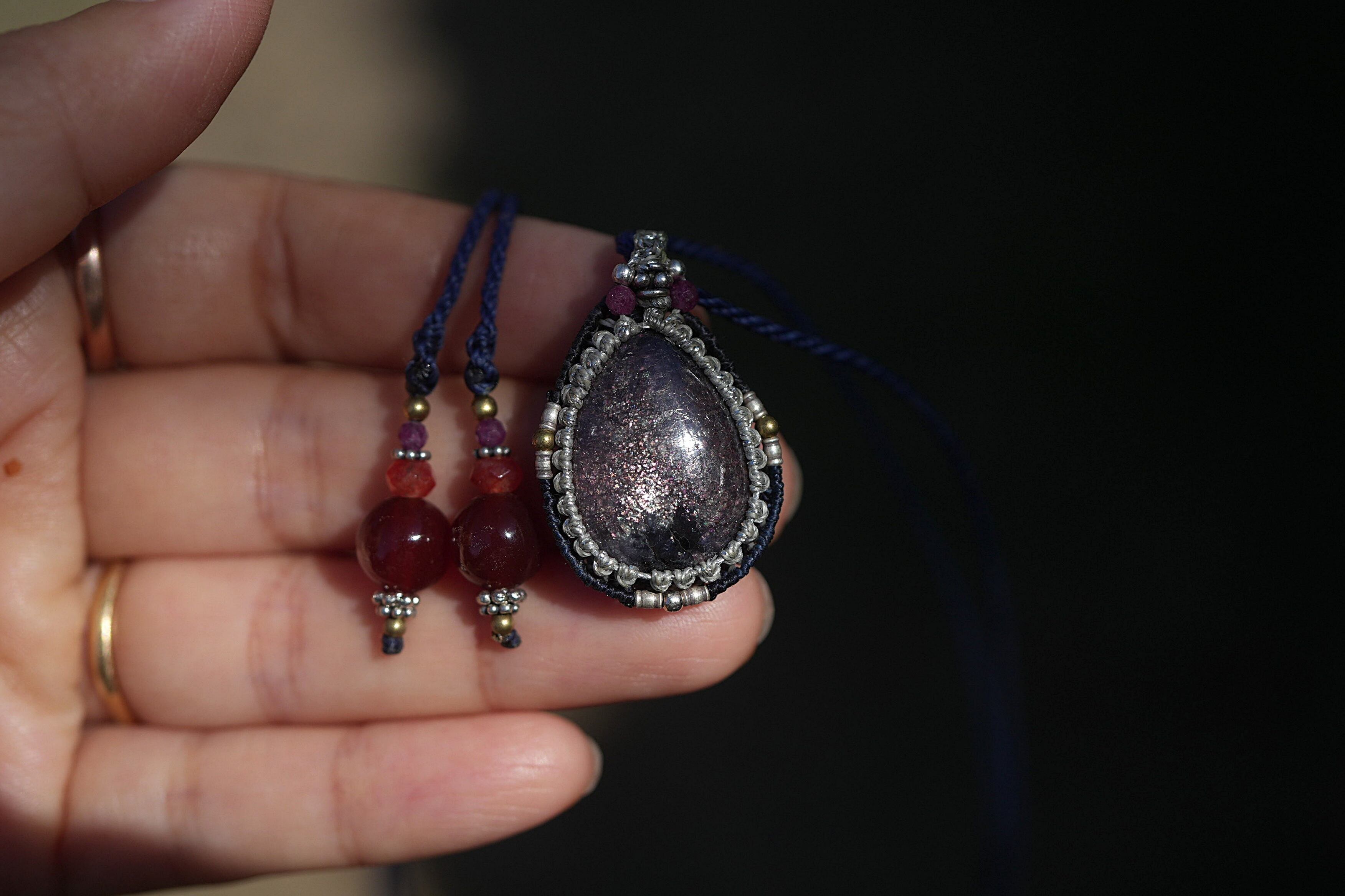 涙のアベンチュレッセンス★アイオライトサンストーン マクラメネックレス1944