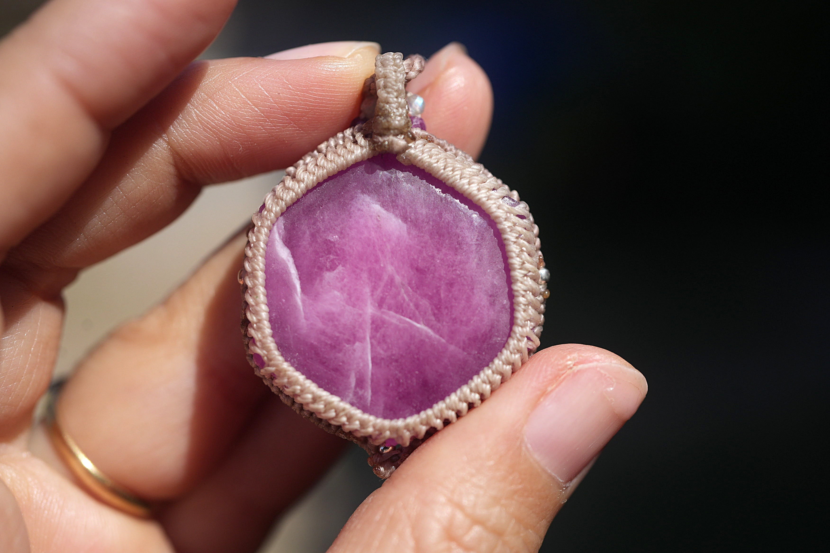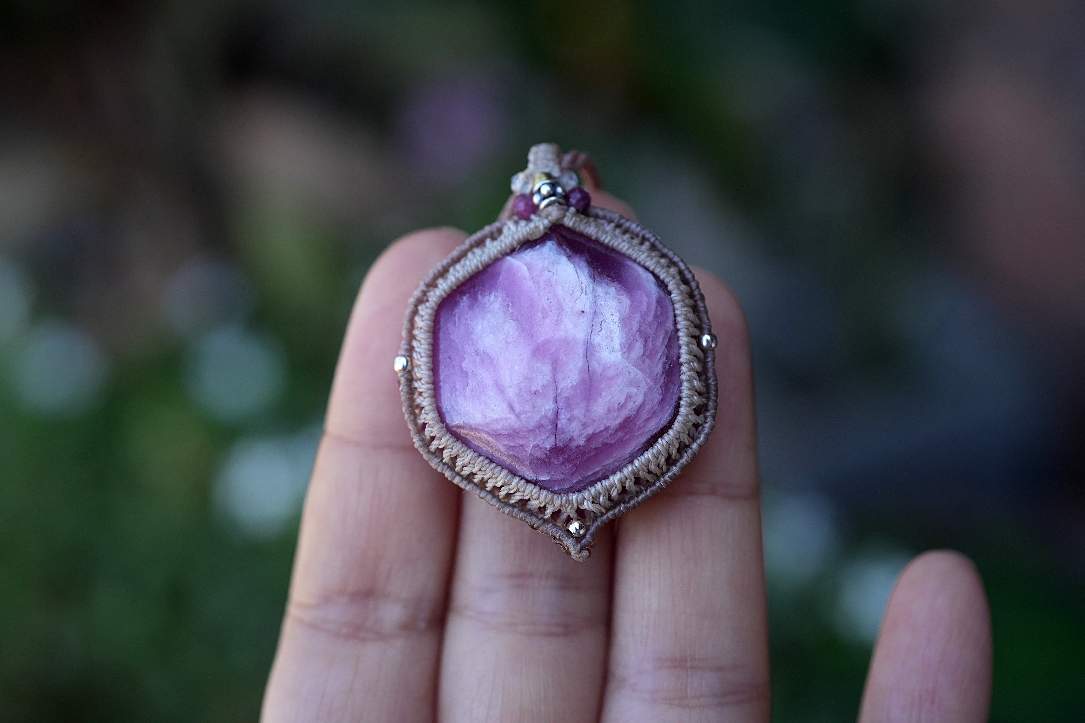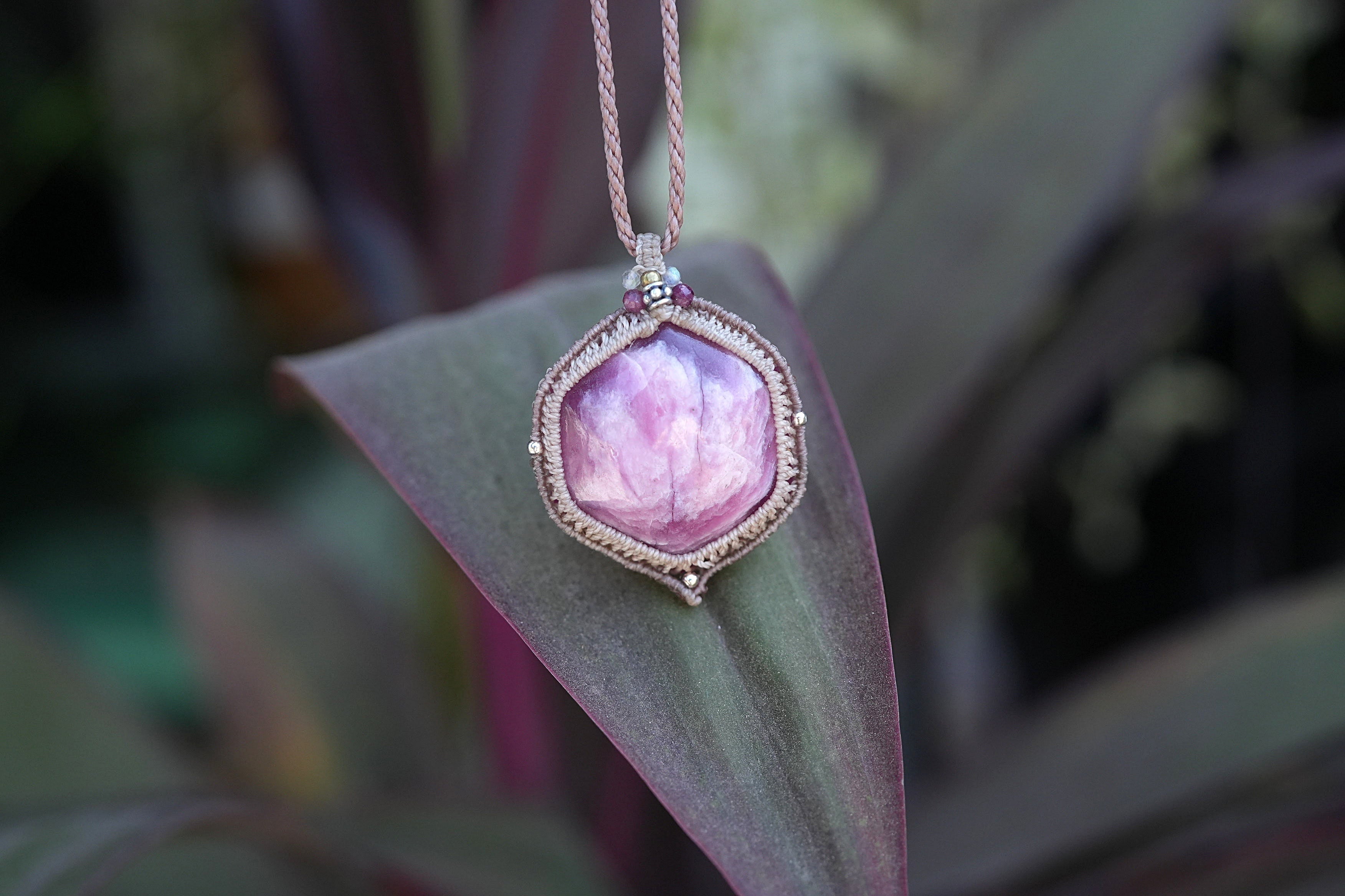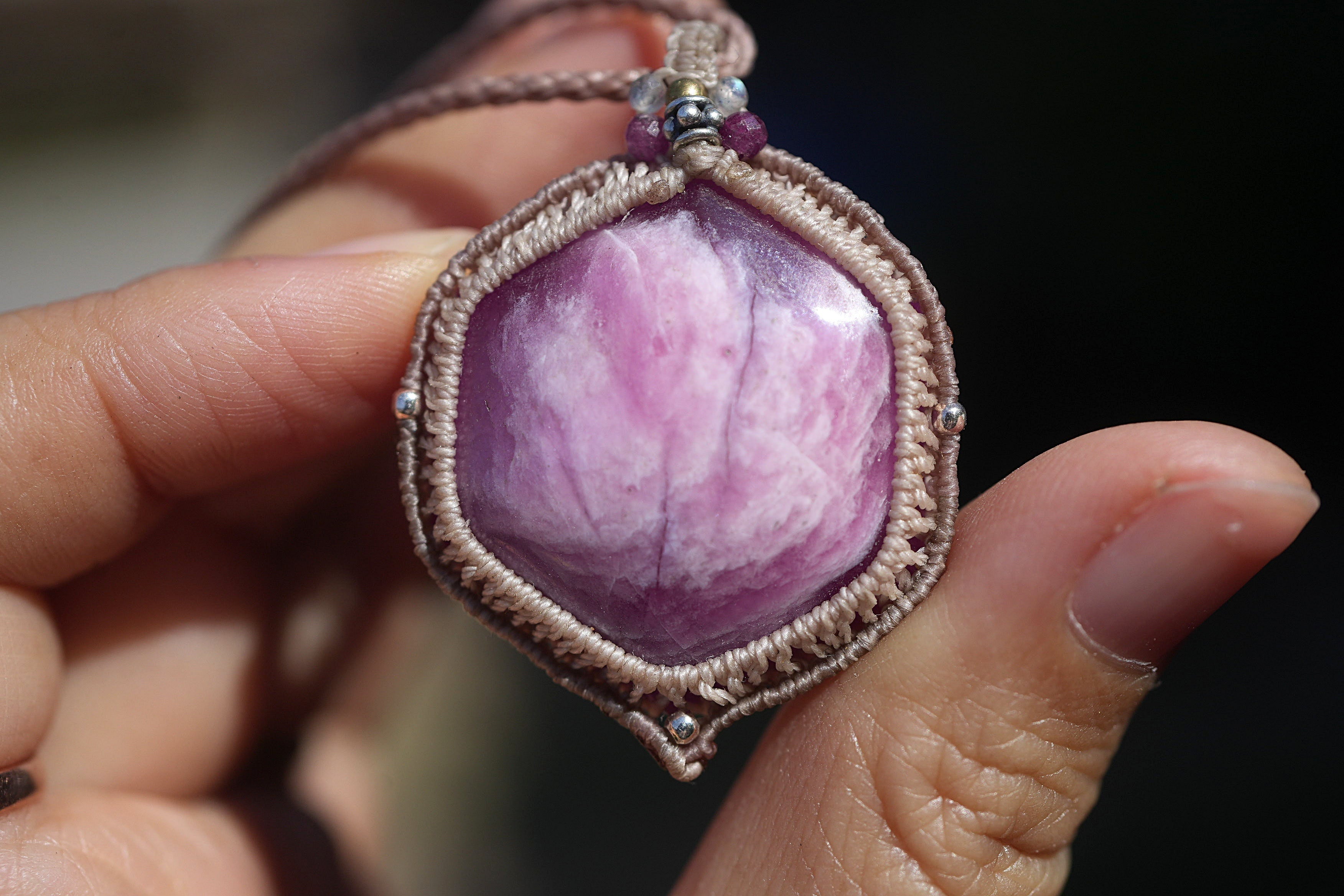 六角形コランダム★ローズルビー マクラメネックレス 1945