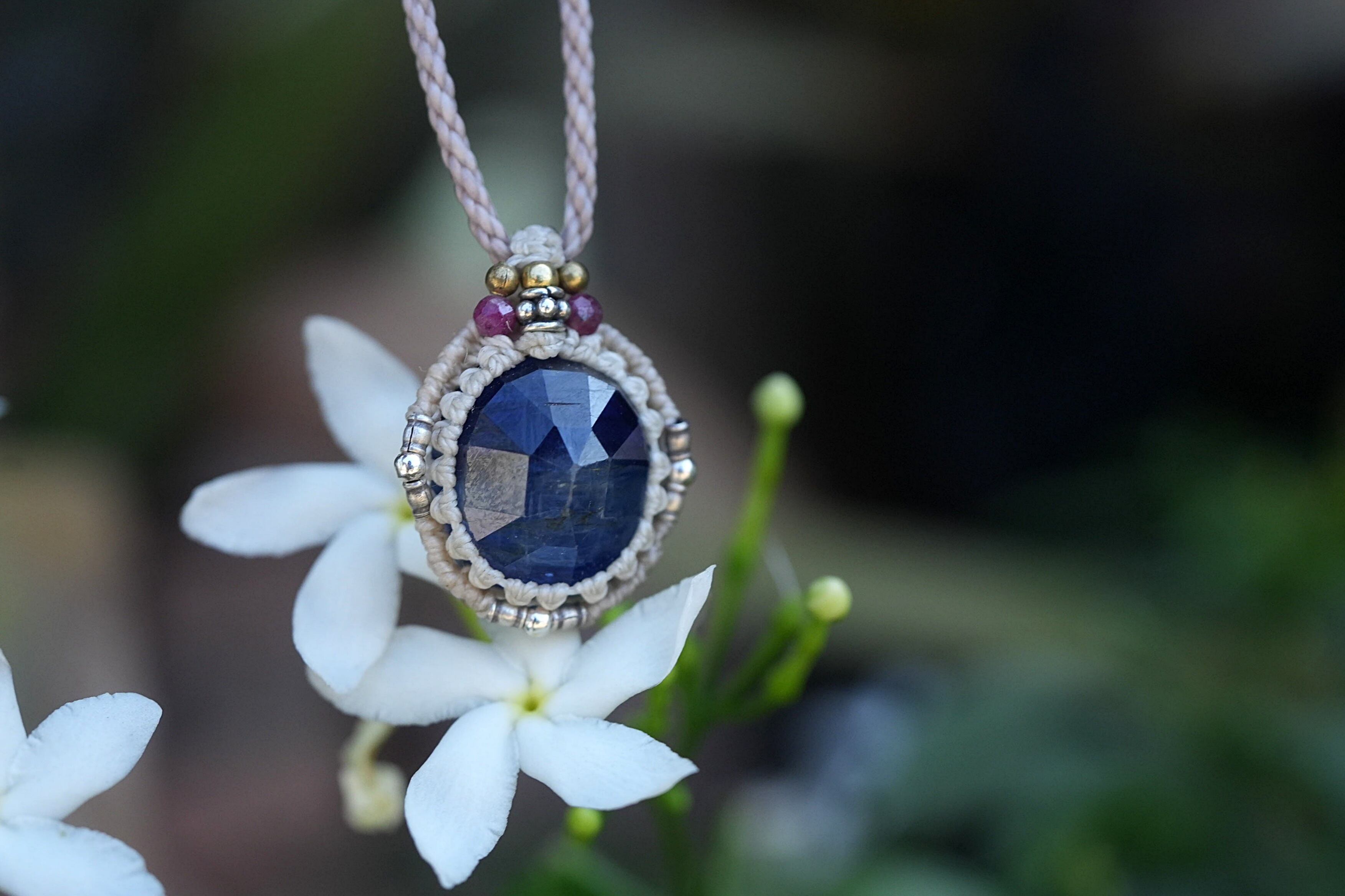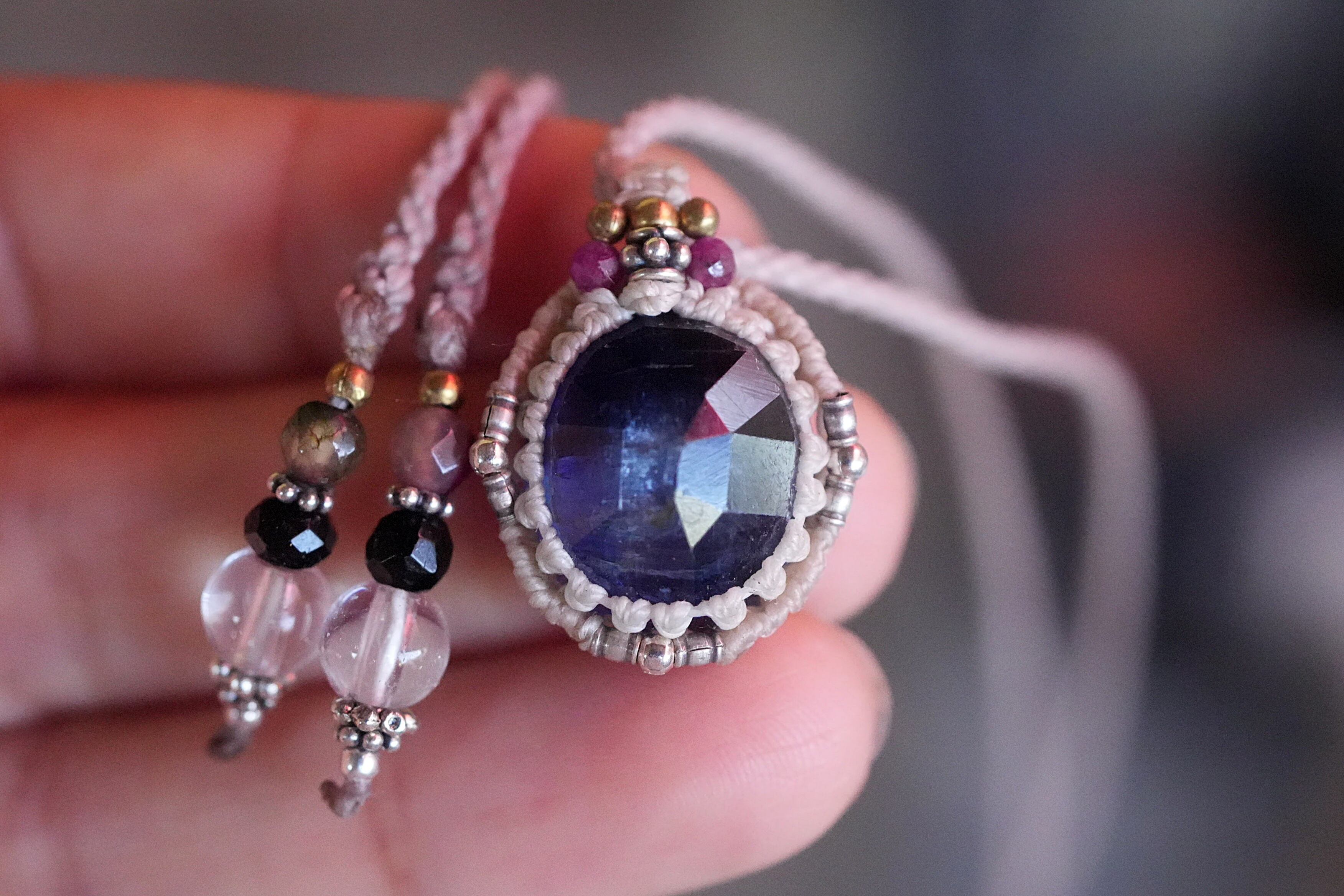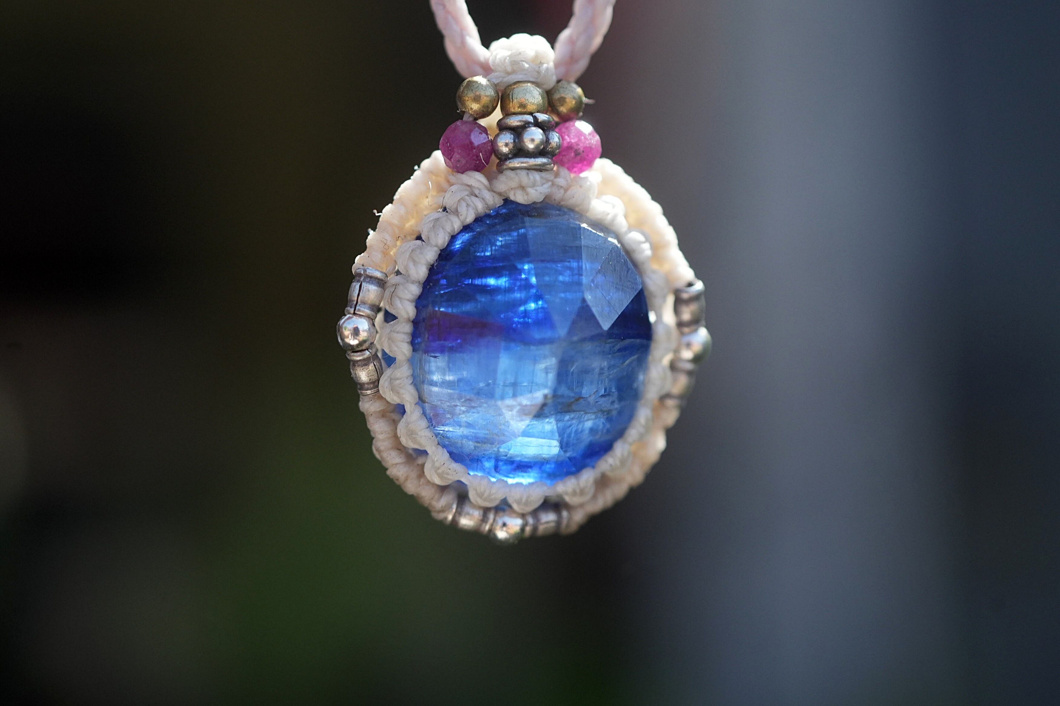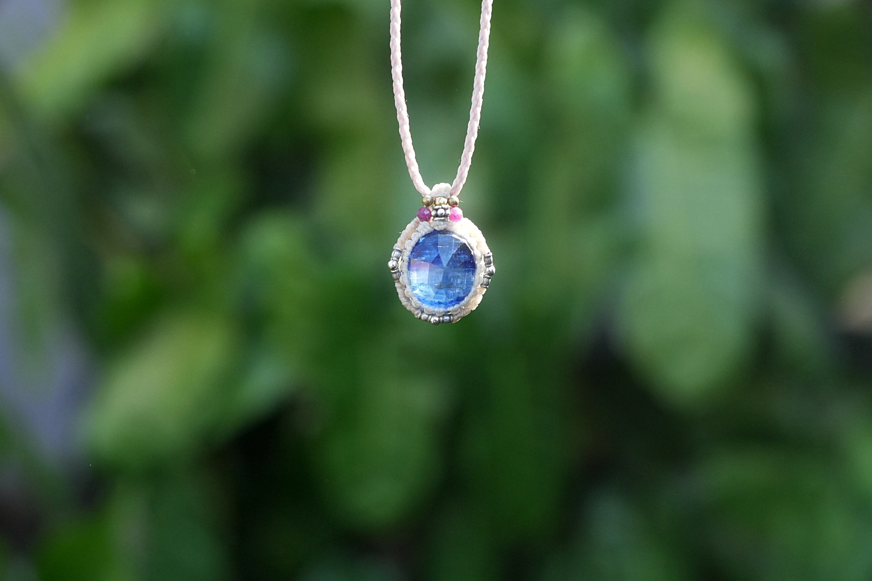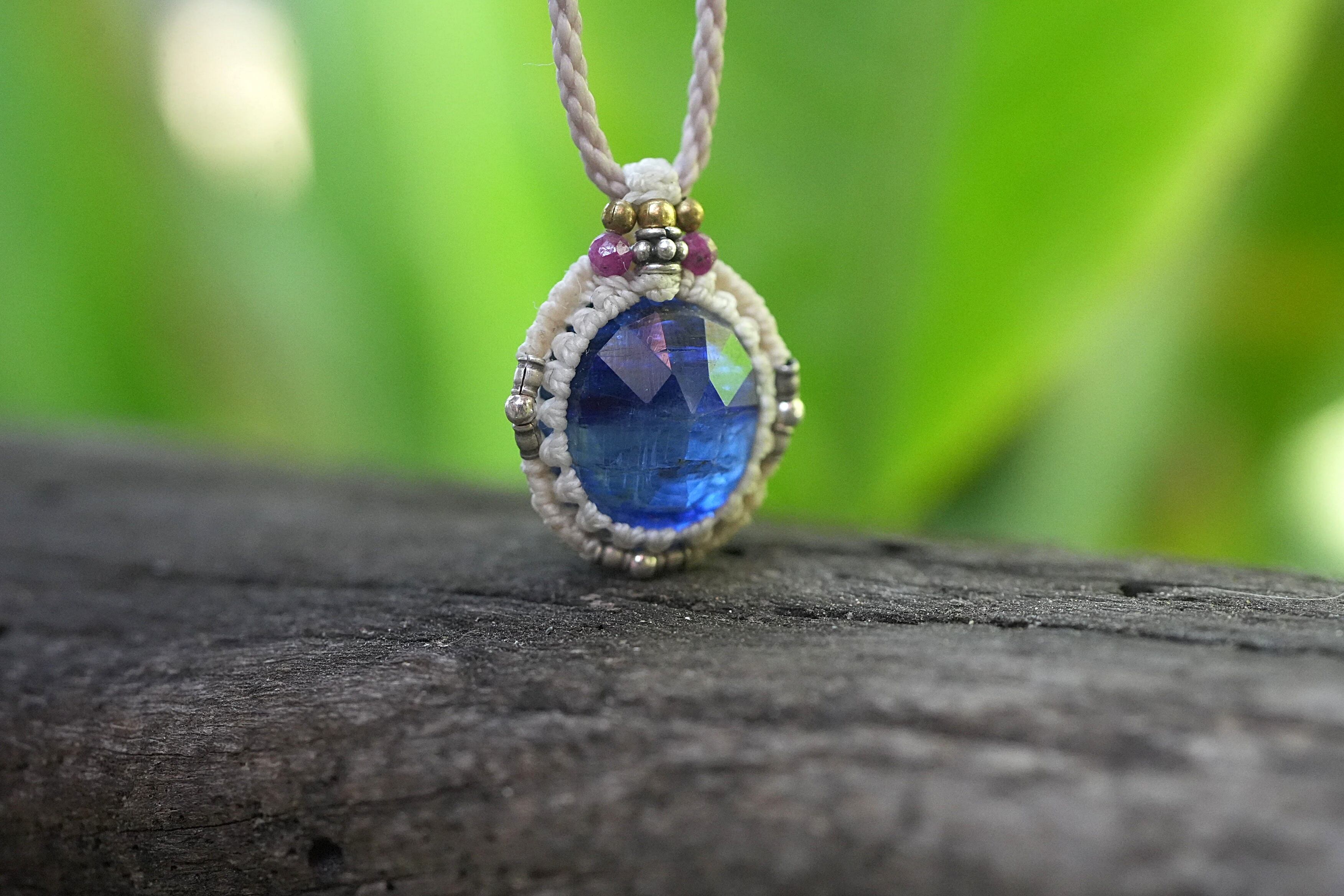 高品質 宝石カット★kyanite マクラメネックレス 1946