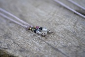 ◆このたびはナチュラルホワイト、キナリ色の蝋引き糸を使用しマクラメ編み装飾を施しました。