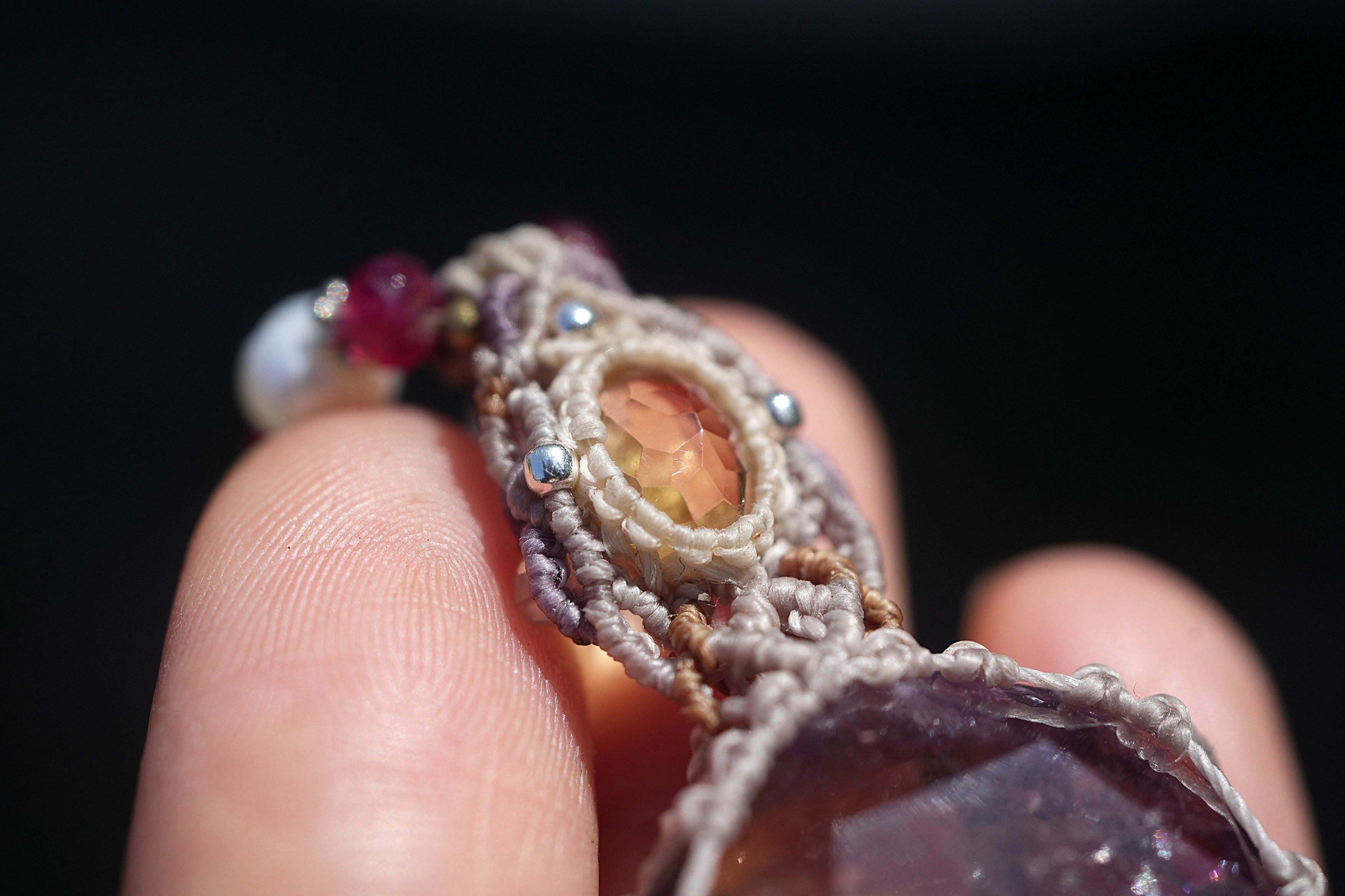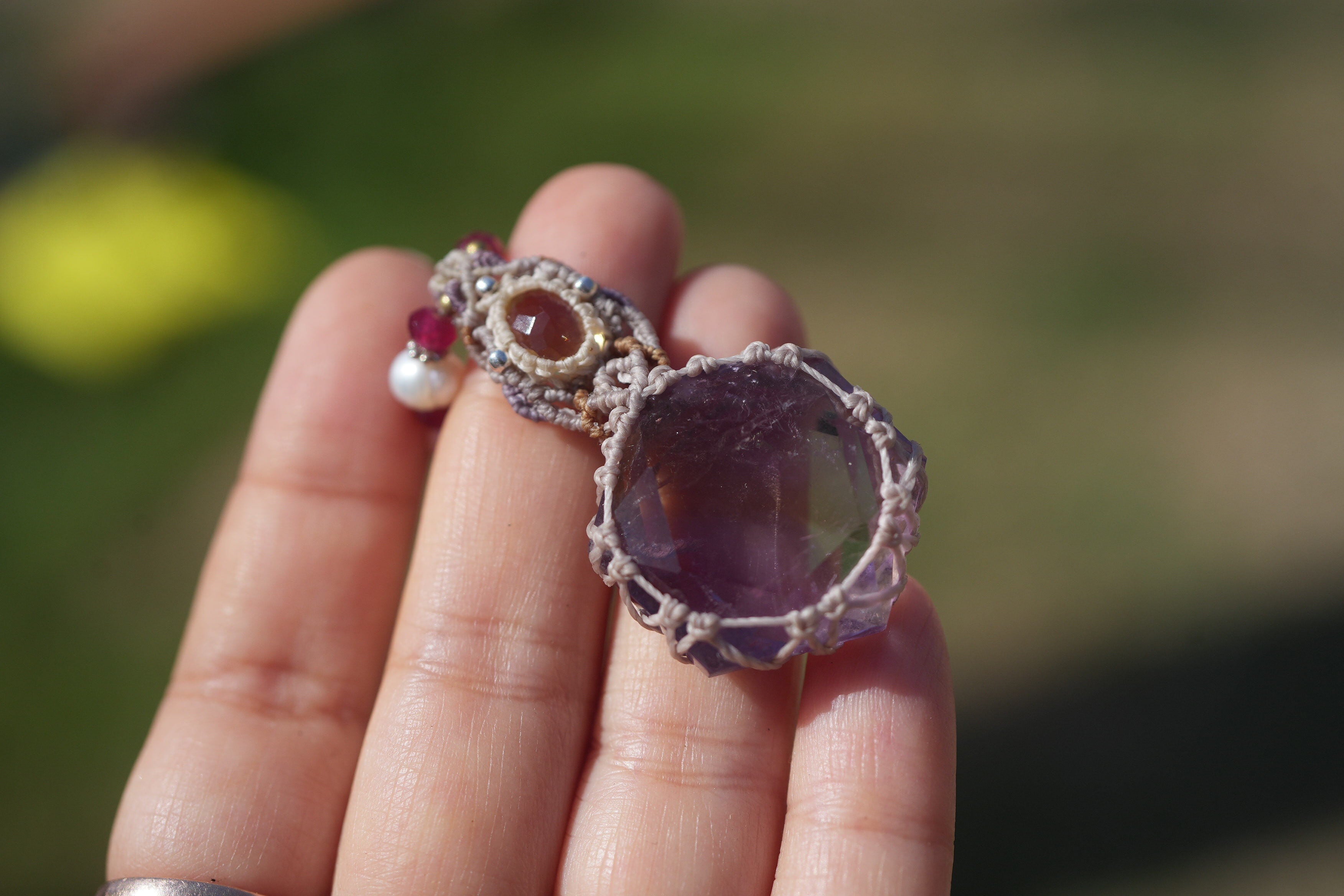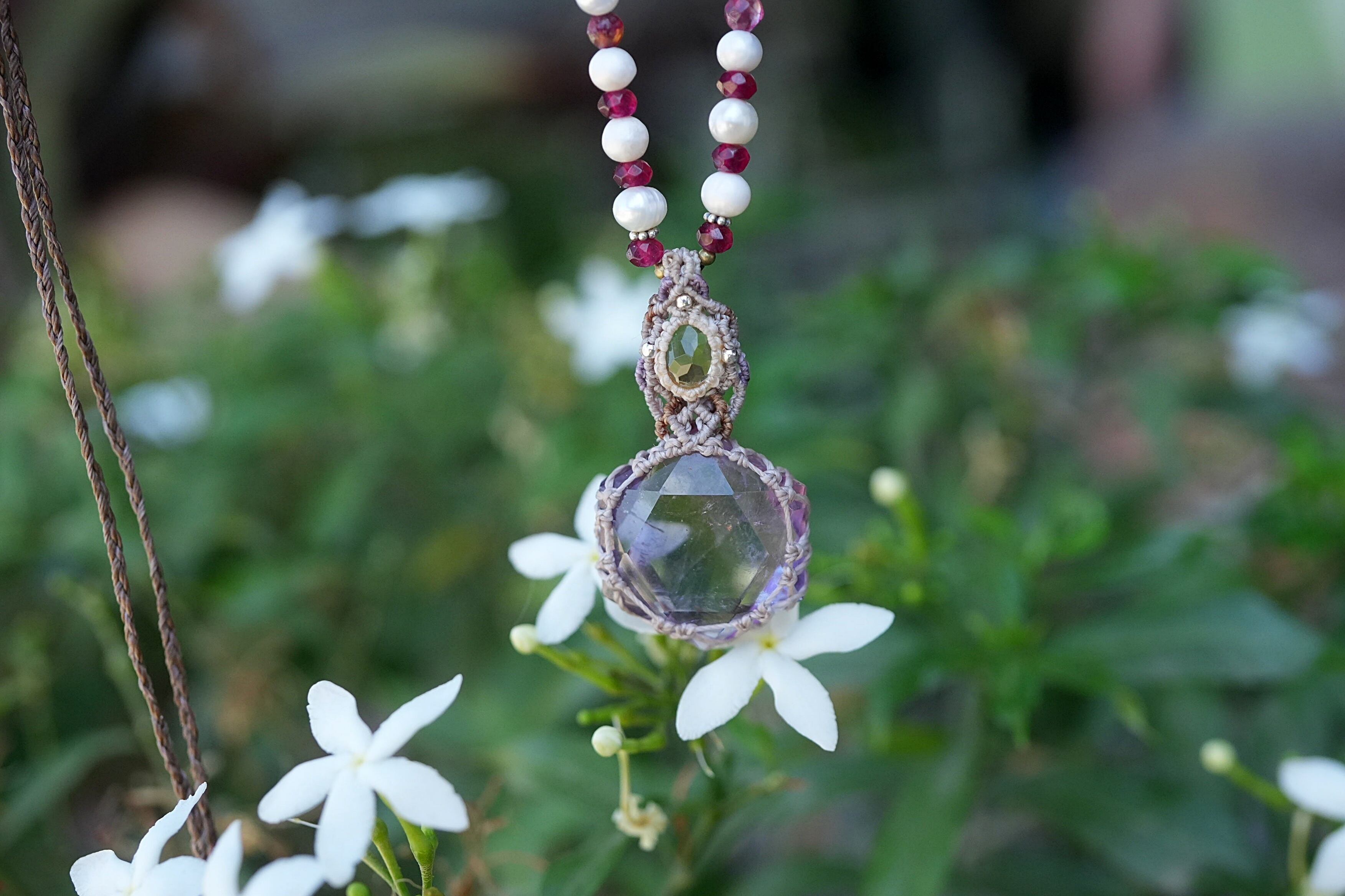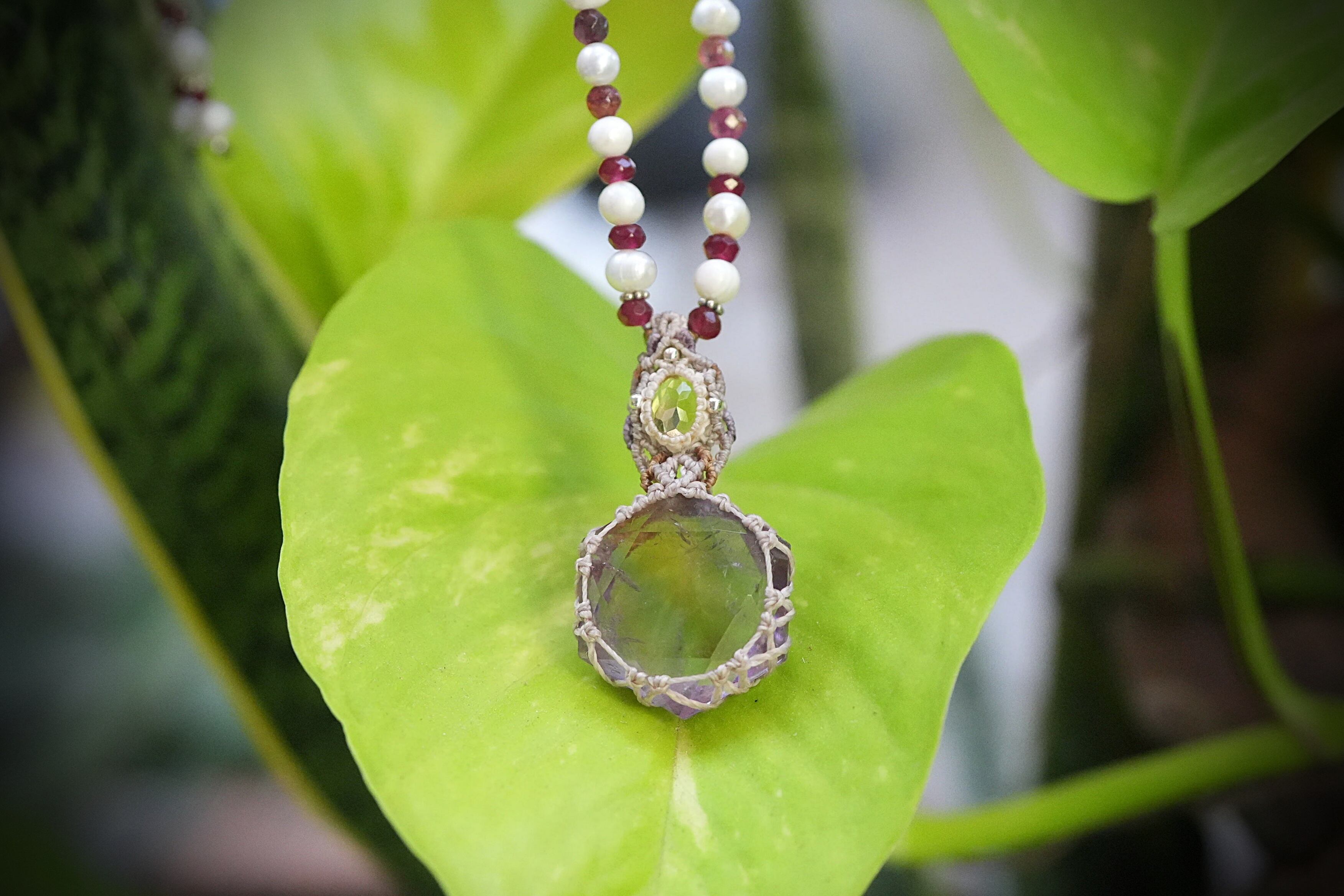 虹入り★宝石シトリン アメトリン マクラメネックレス 1947