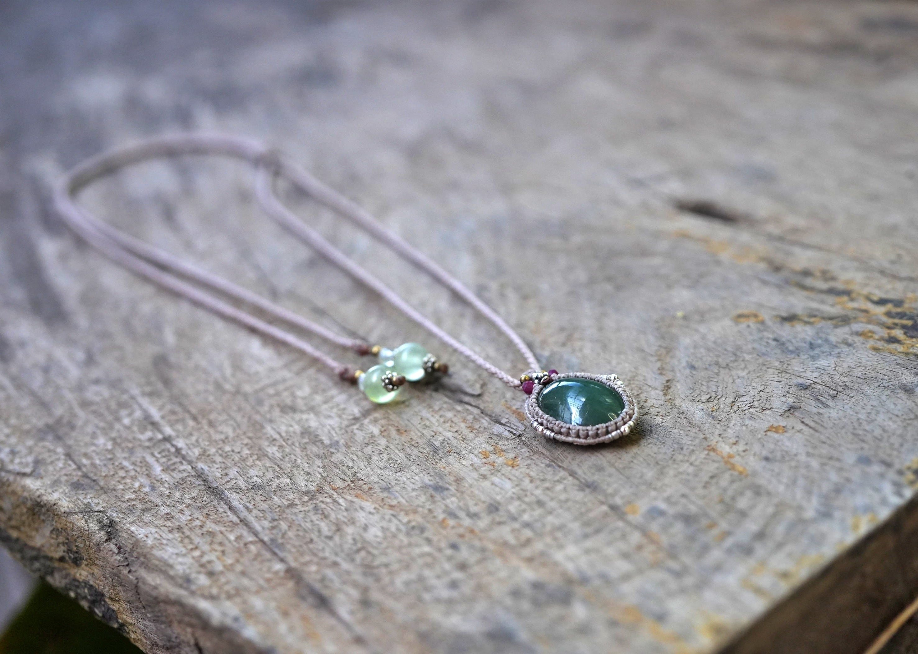 深い緑ミャンマーJede★翡翠★ マクラメネックレス1952