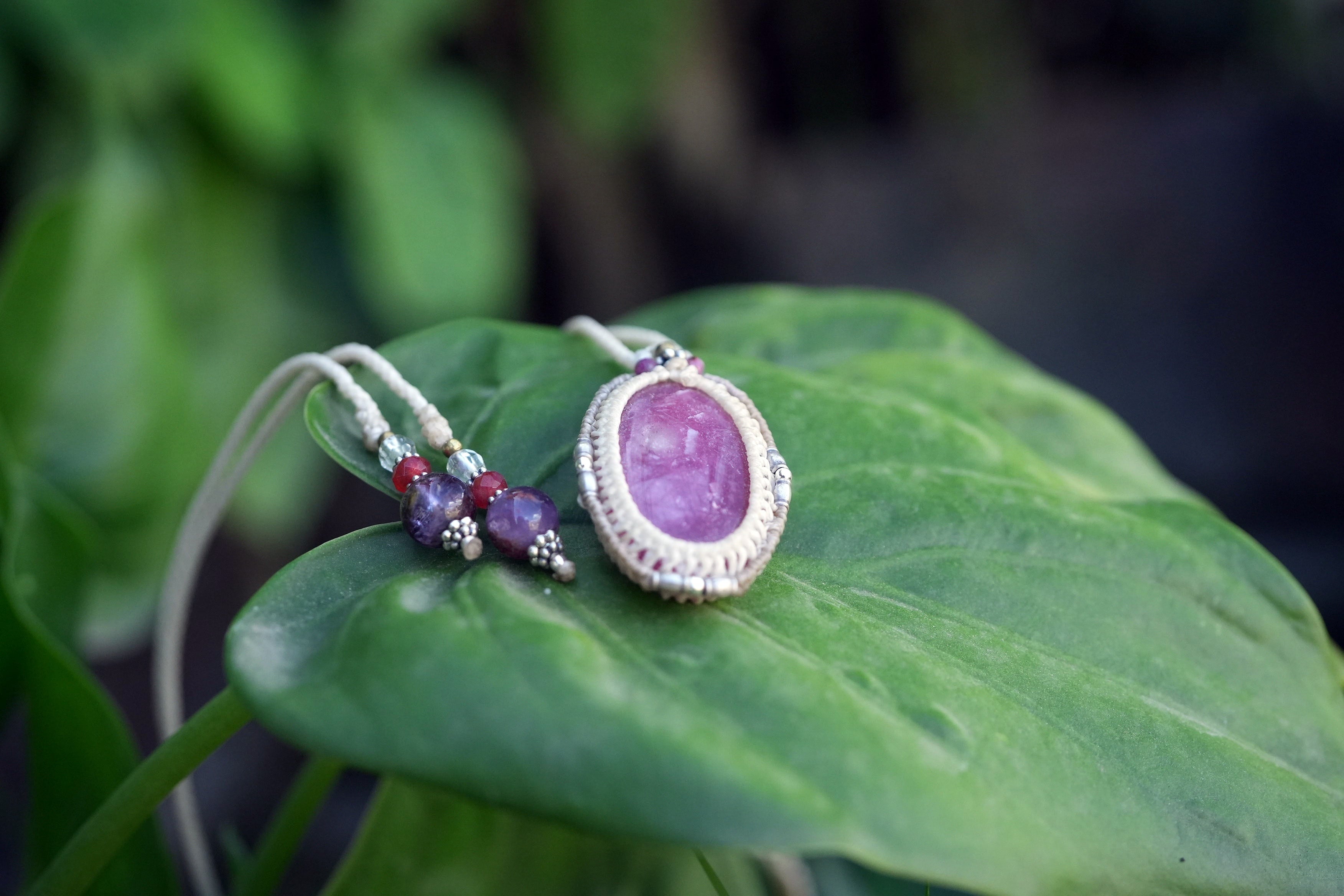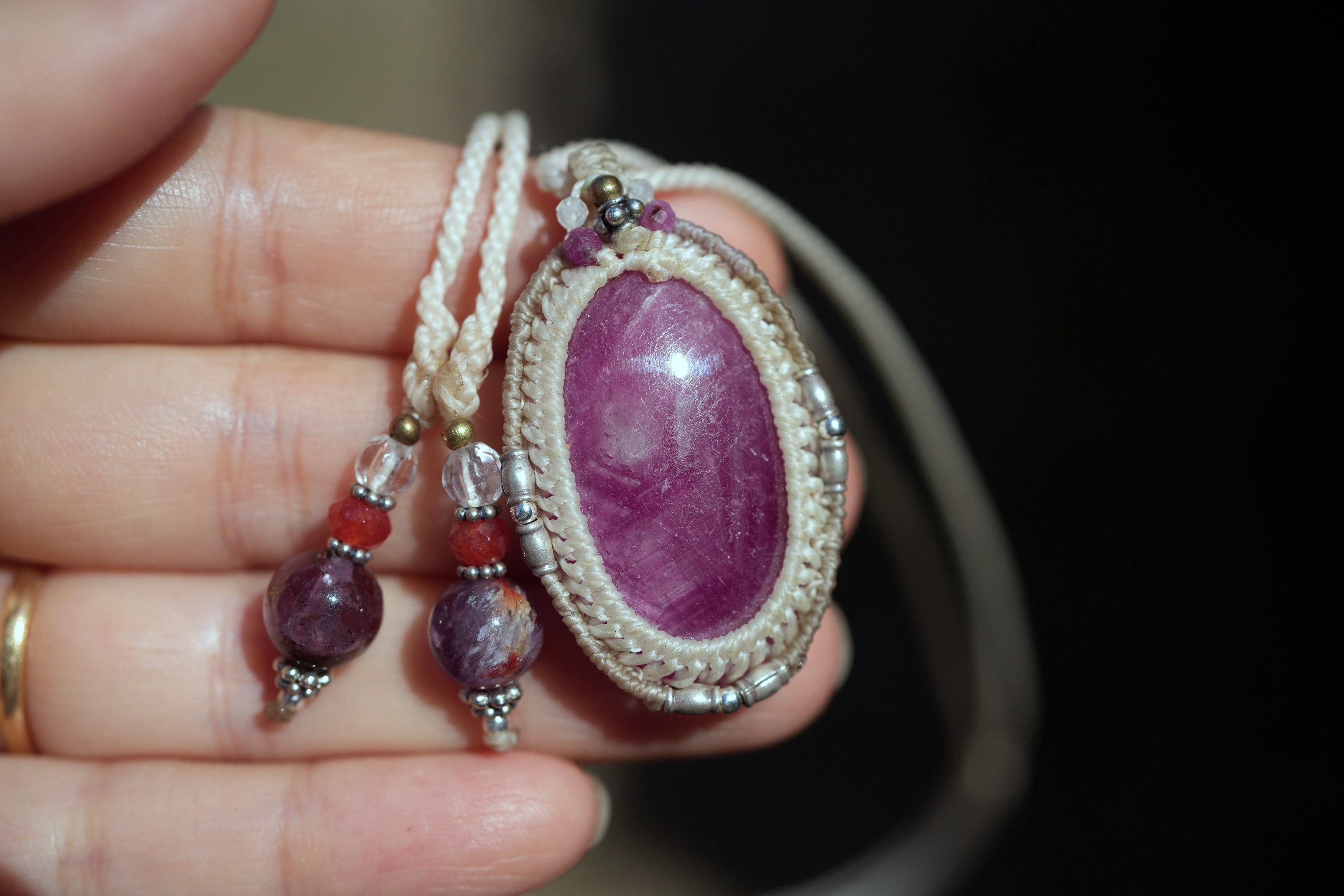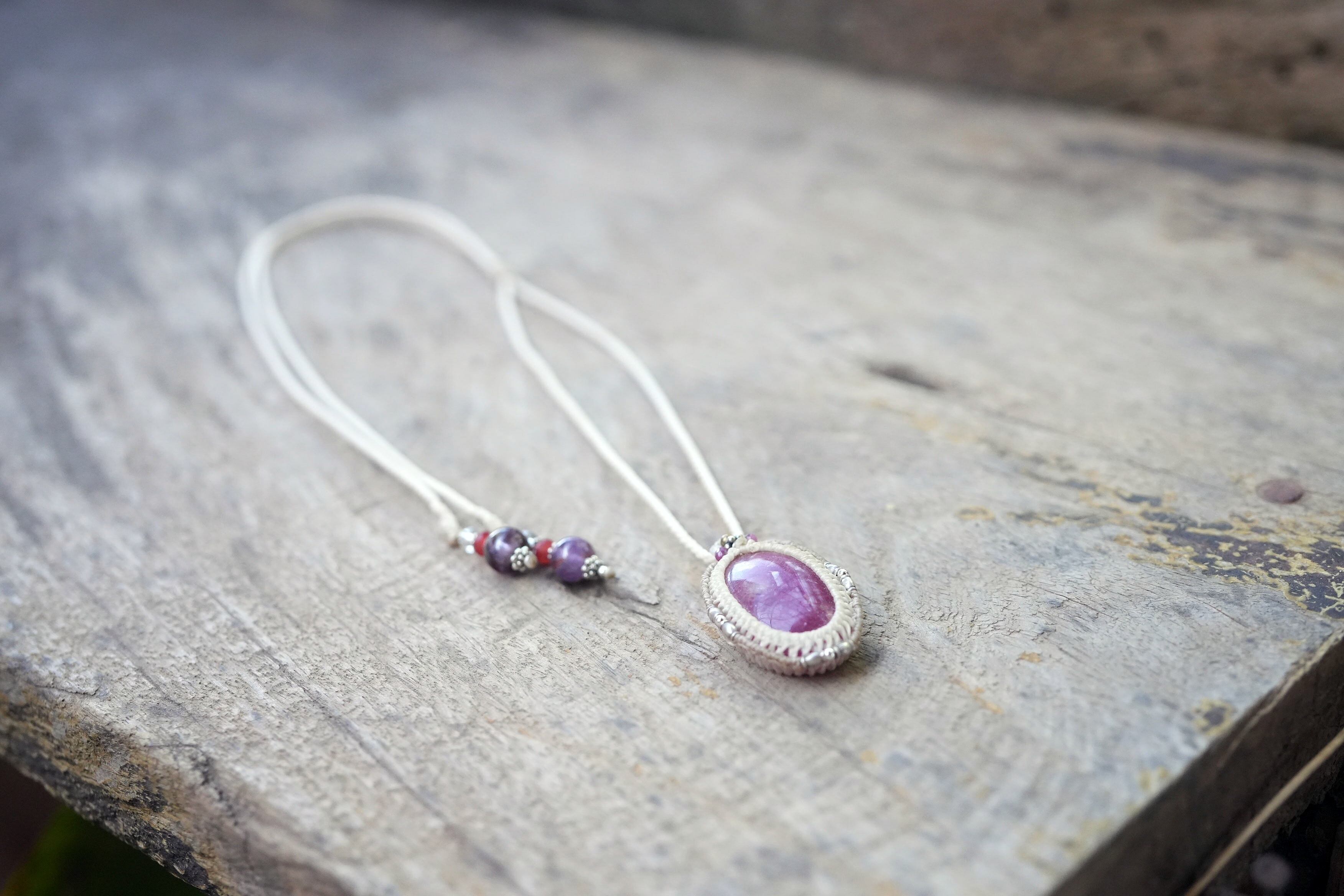 コランダム★ピンクサファイア★ マクラメネックレス1953
