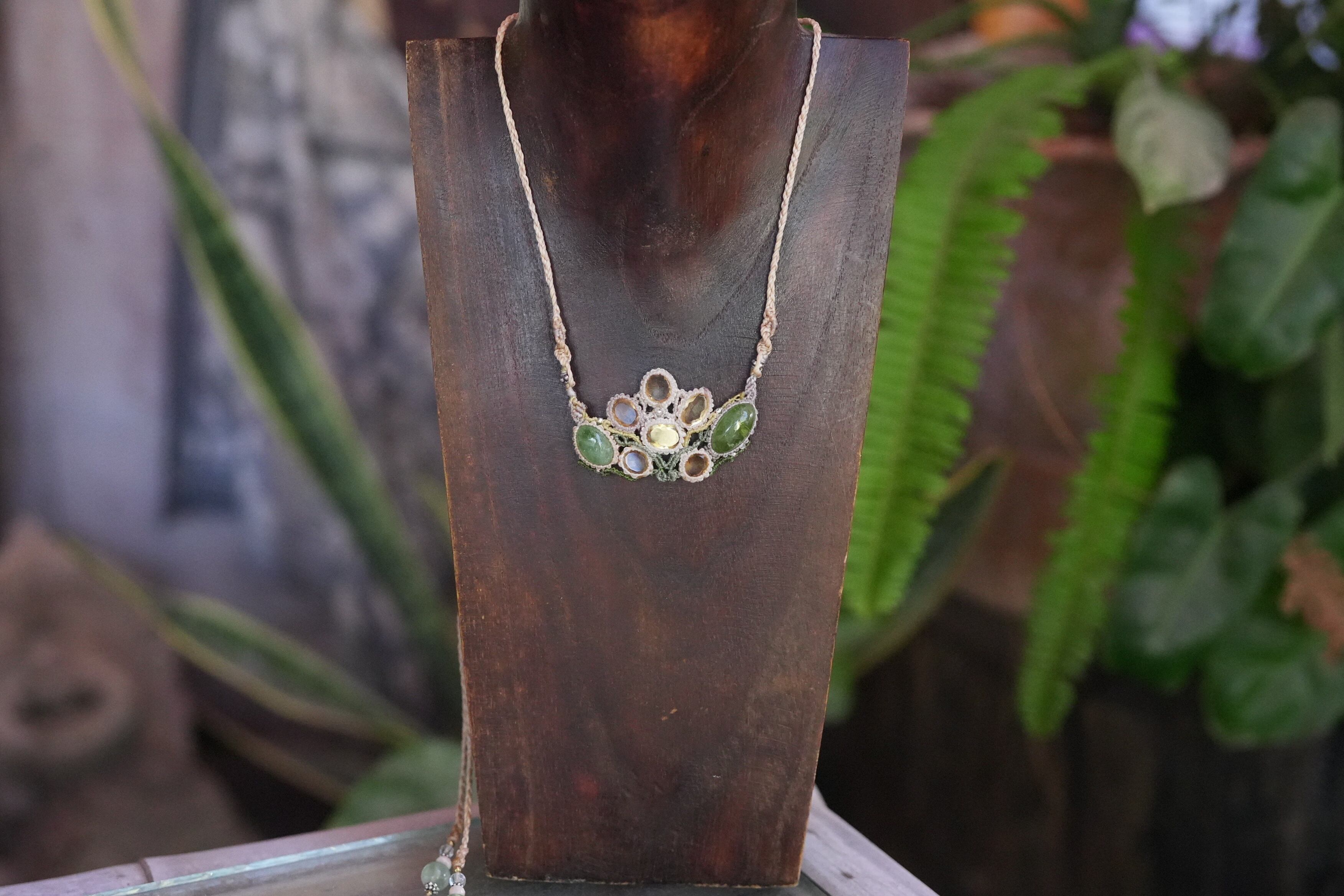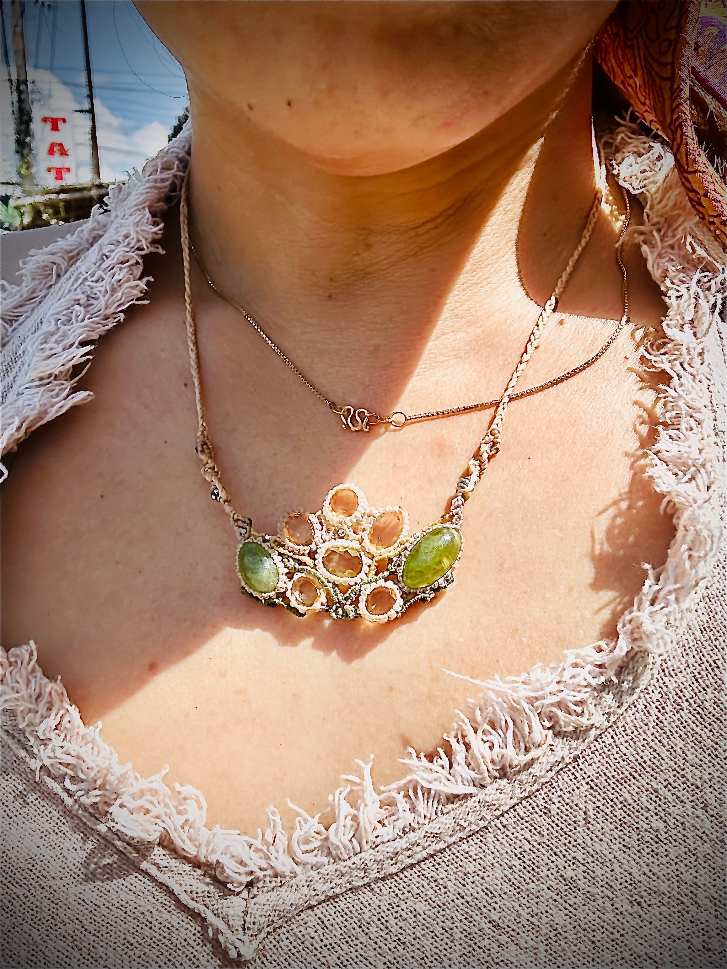 春のミモザ★ペリドット 宝石シトリン マクラメネックレス 1955