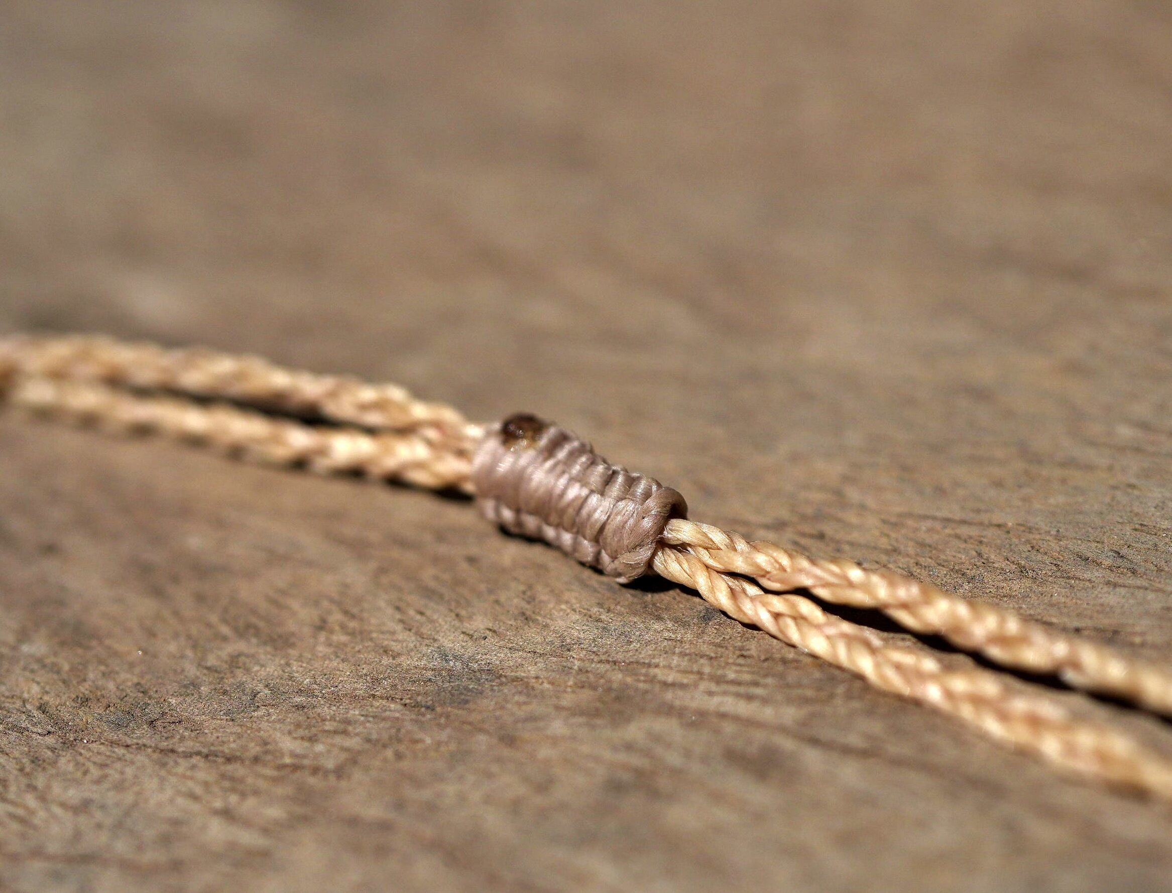 ◆このたびはナチュラルホワイト、カフェオレ、キャラメル、イエロー色の蝋引き糸を使用しマクラメ編み装飾を施しました。