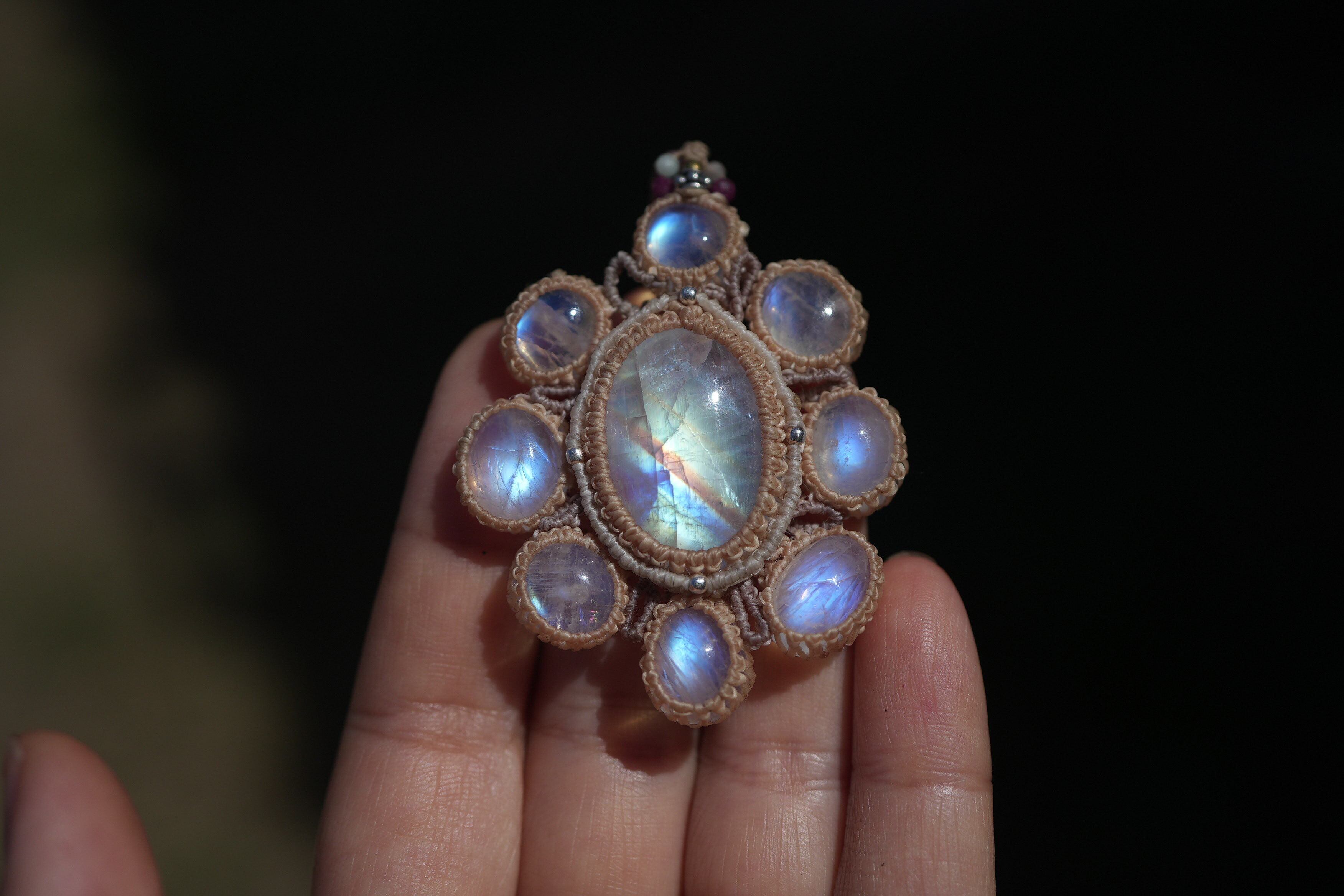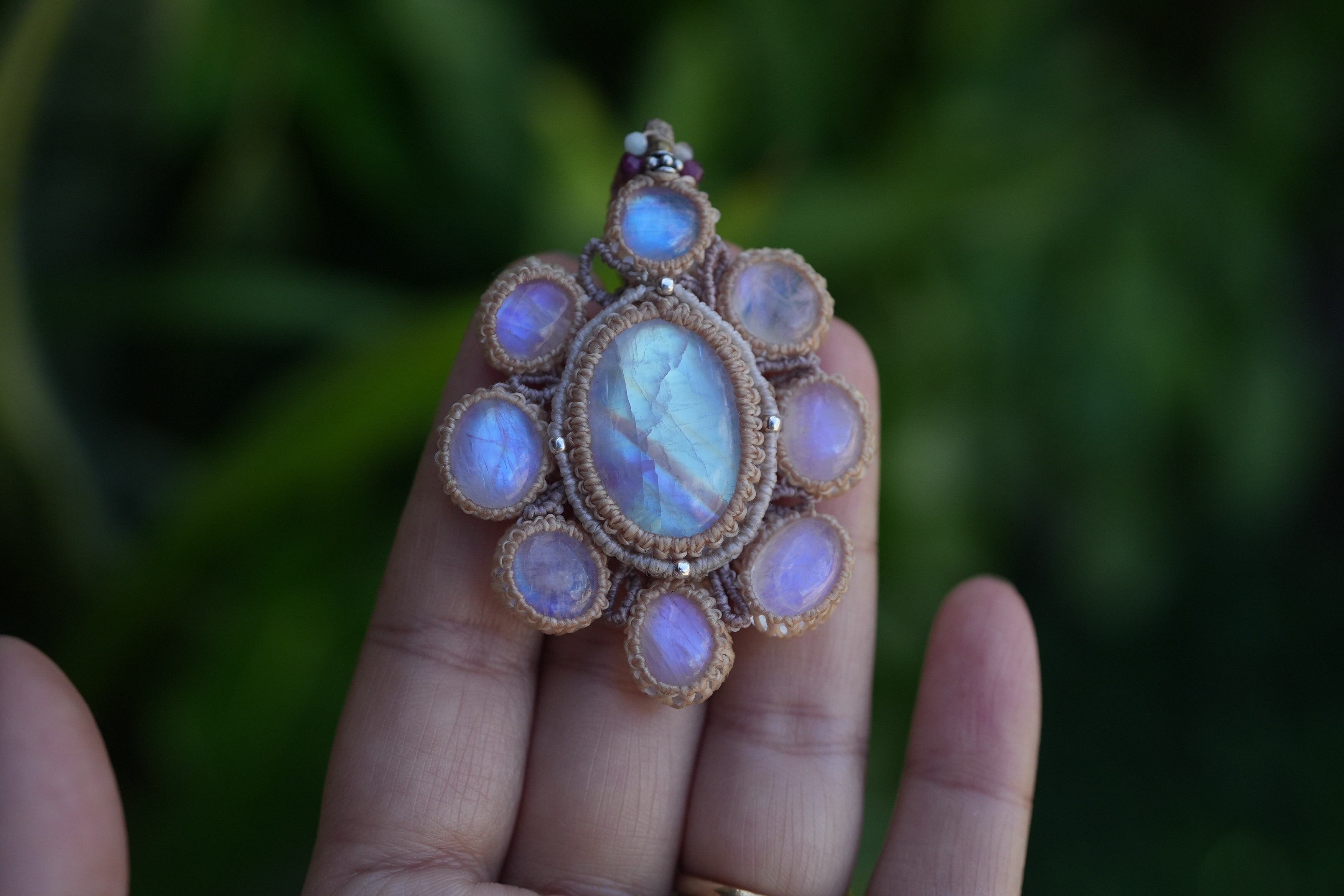 大輪の花月★高品質★ムーンストーン マクラメネックレス1957